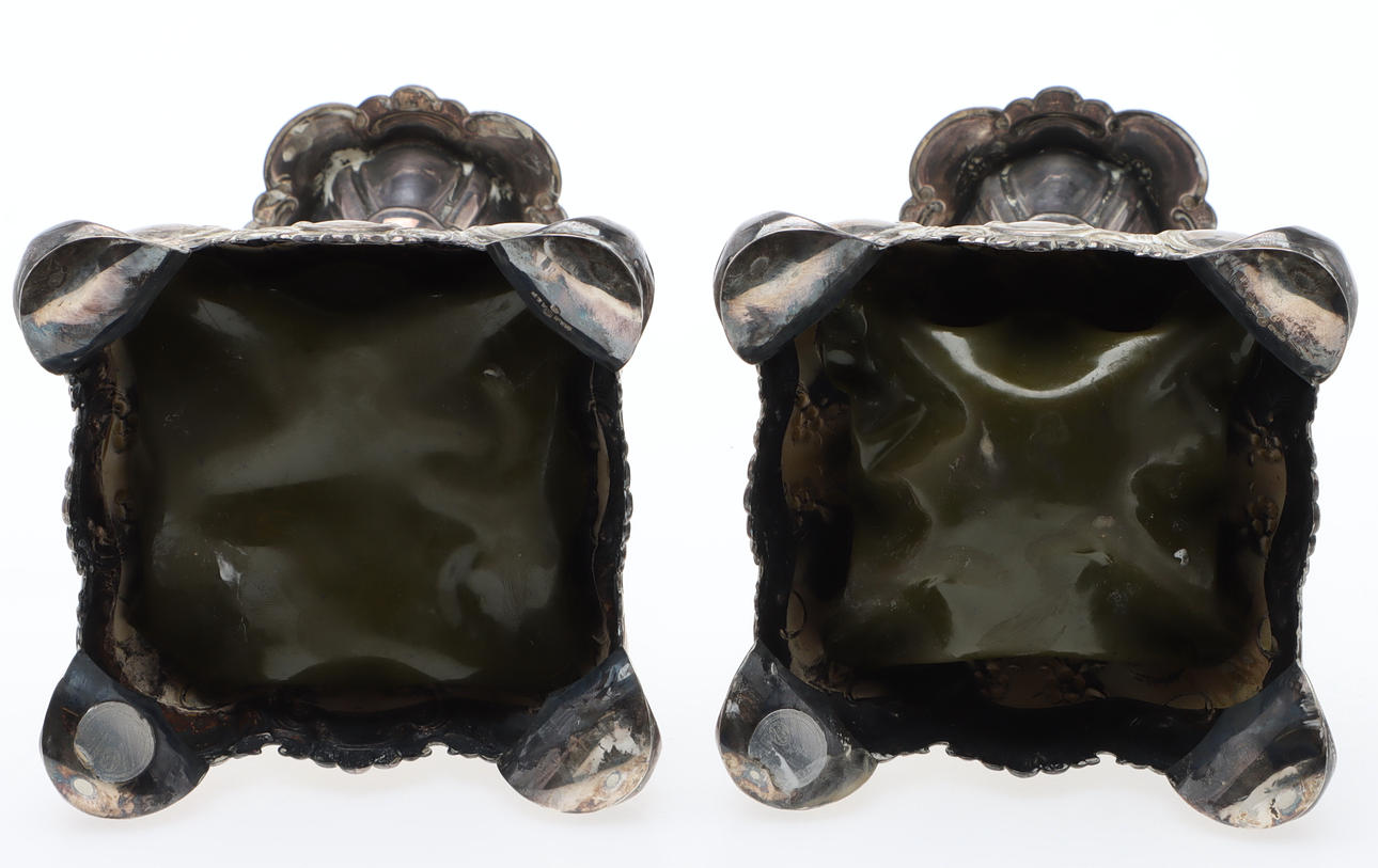 CANDLESTICKS, 1 pair, nickel silver, Rococo style.