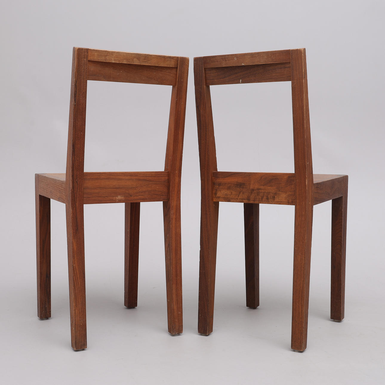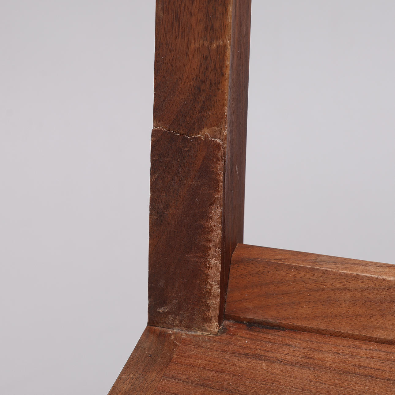 Walnut, unmarked, back height approx. 78 cm, seat height approx. 46 cm.
