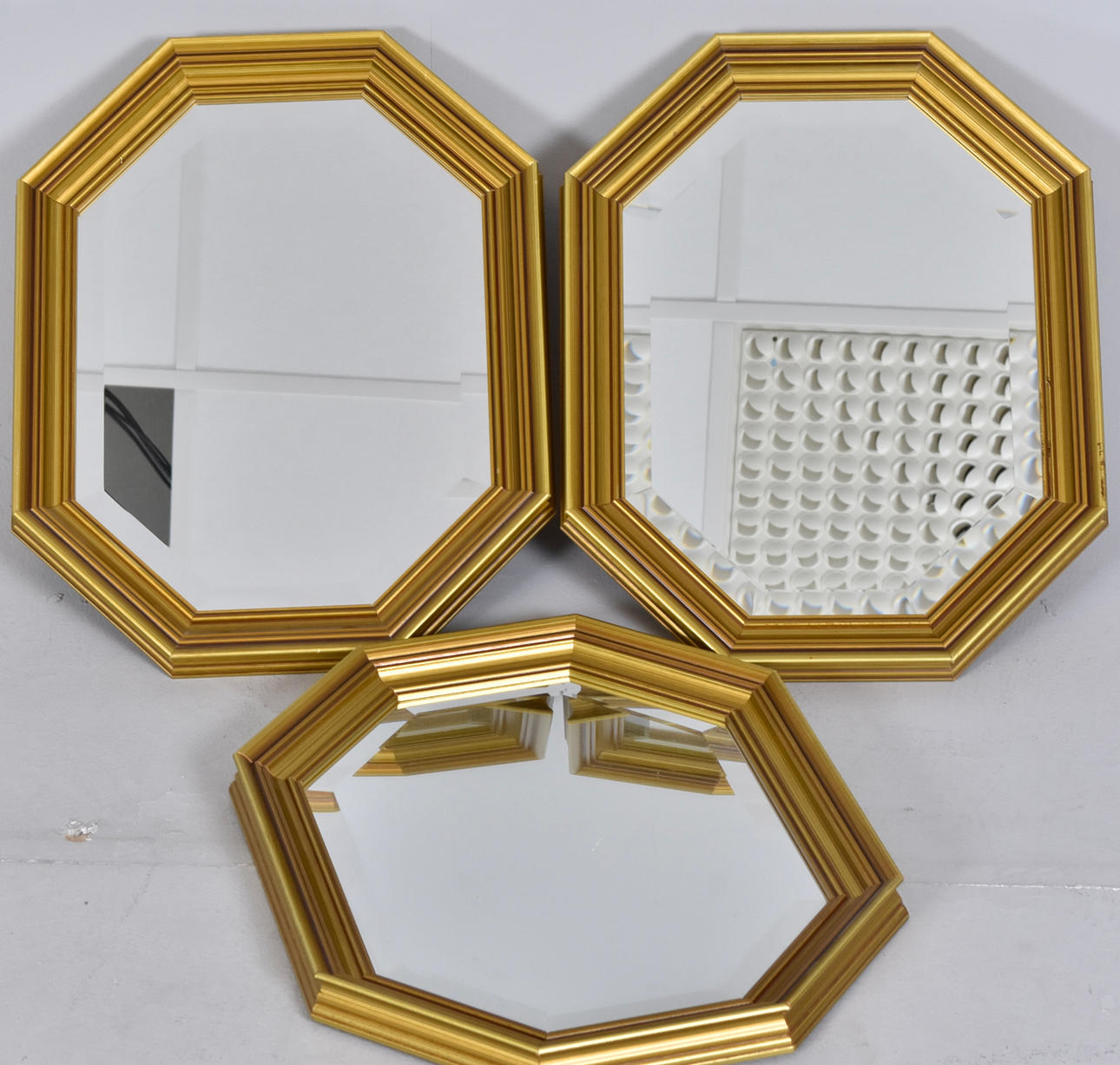 5026578. MIRRORS, 3 pieces, bronzed wood, octagonal.