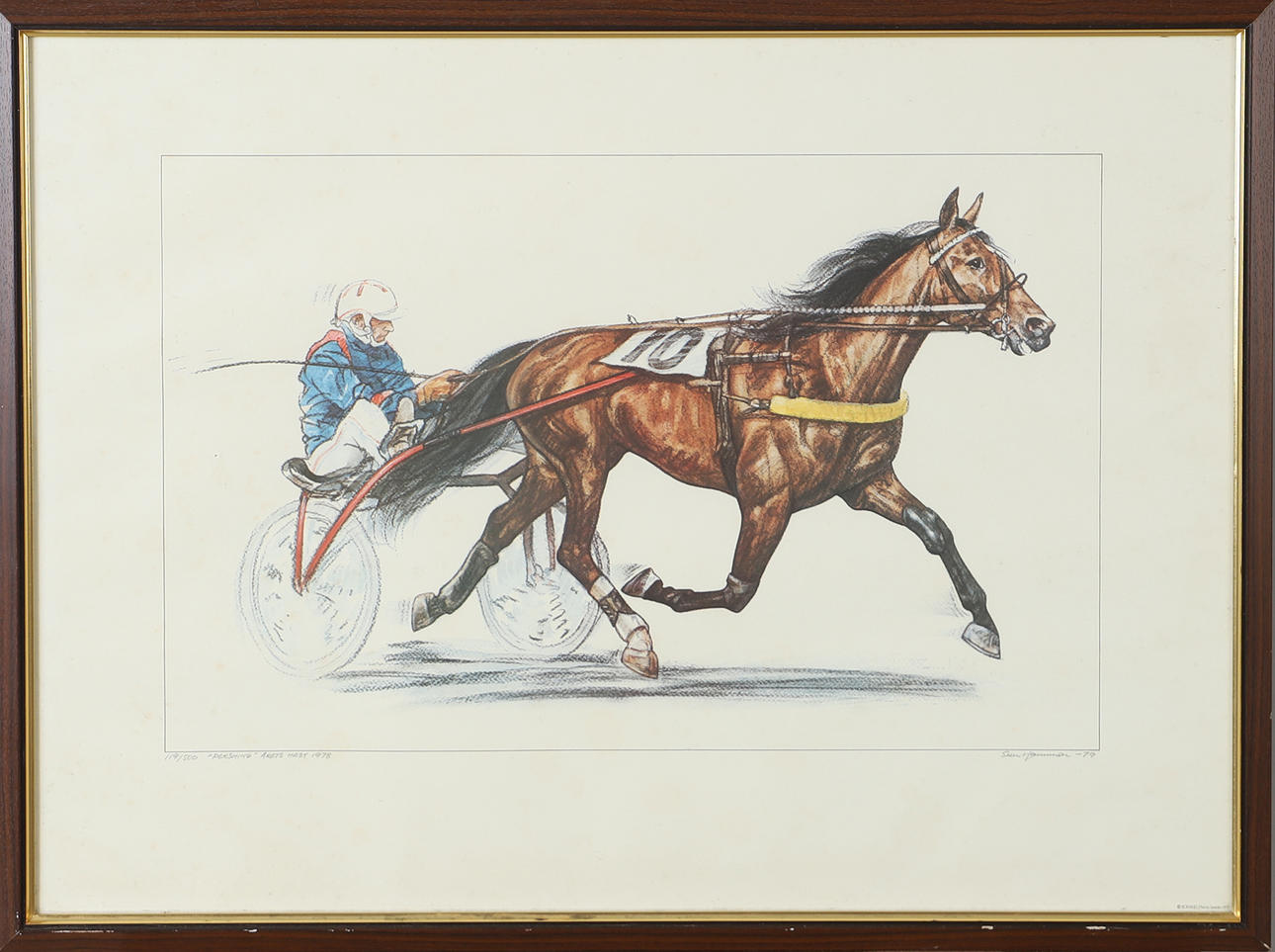 5026664. STEN HAMMAR. "Pershing-årets häst", colour lithograph, signed -79.
