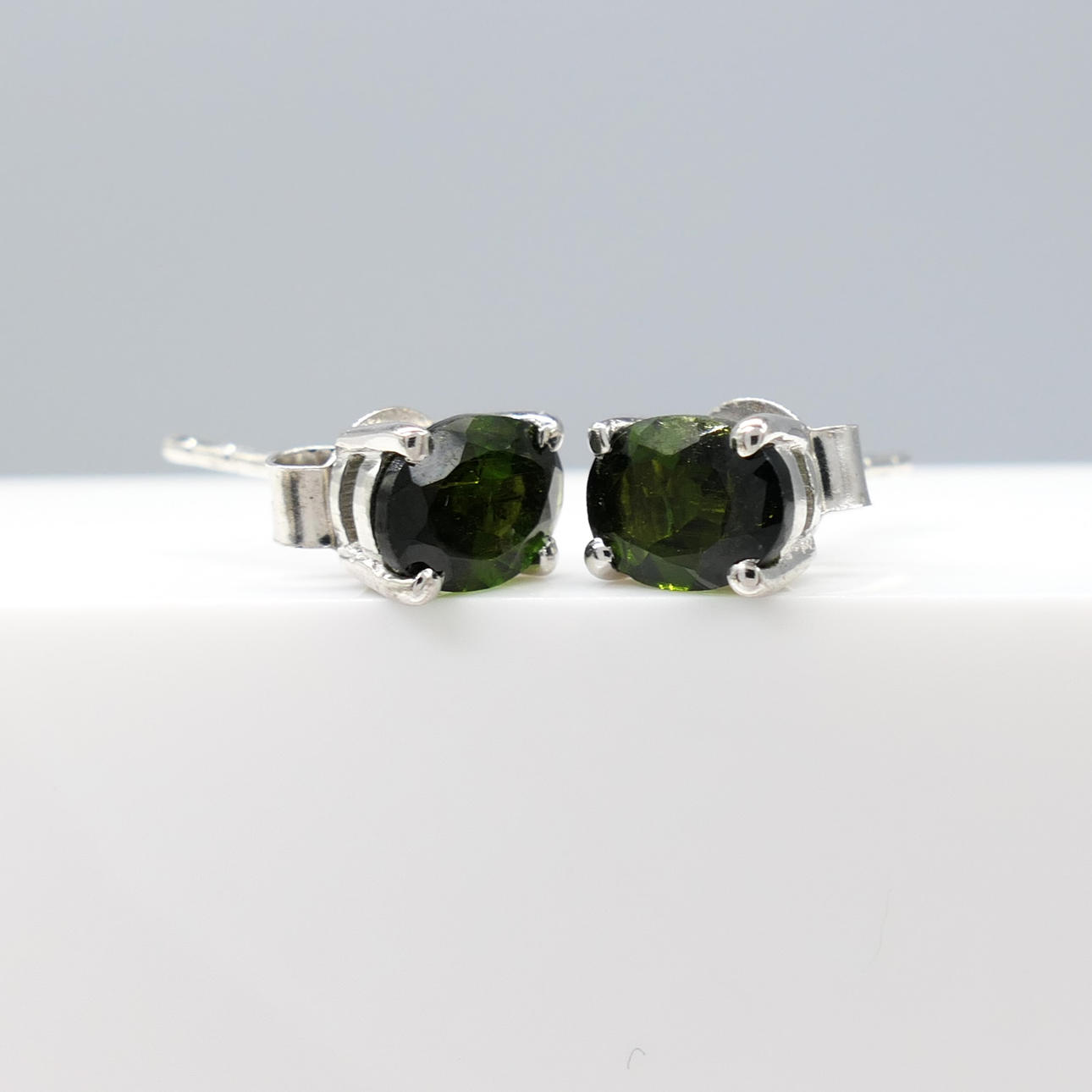 Gemstones: natural green tourmaline; 2 x oval-cut; 1.30ct total approx; 6 x 4mm each