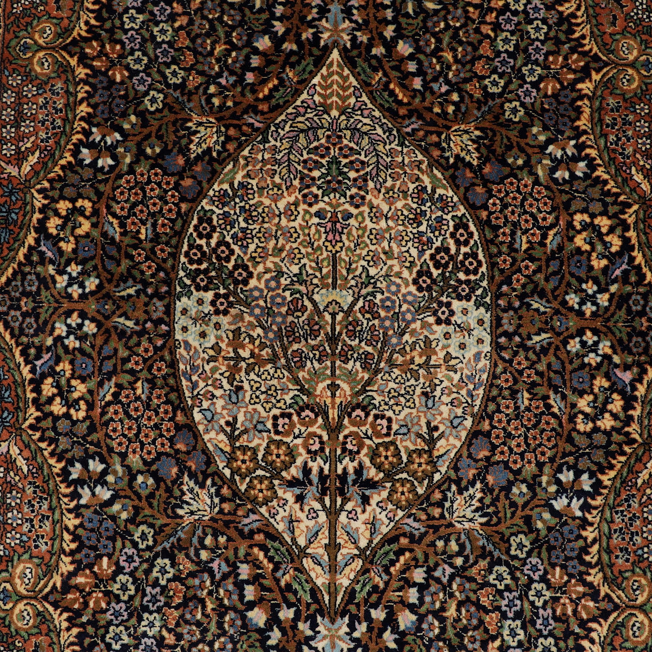 CARPET with silk elements, Pakistan, 226 x 143 cm.