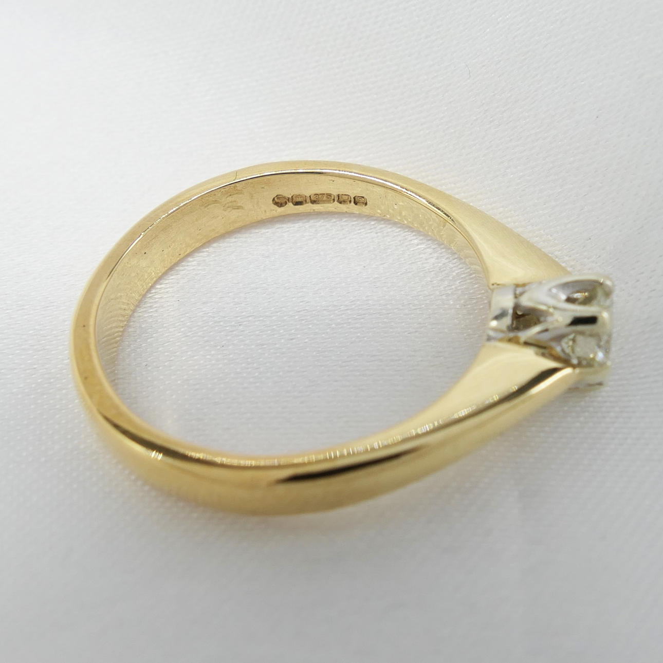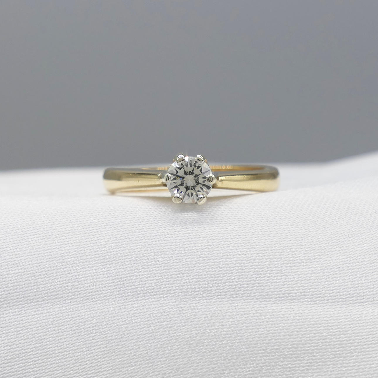 A good quality diamond solitaire ring in yellow and white gold, with gifting box