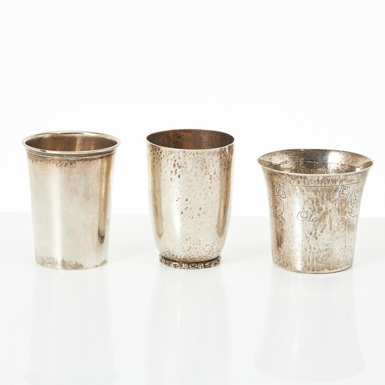 Incl. 2 pcs K Anderson, hand-hammered, one with chased decoration, height 7-9 cm, weight 319 g.