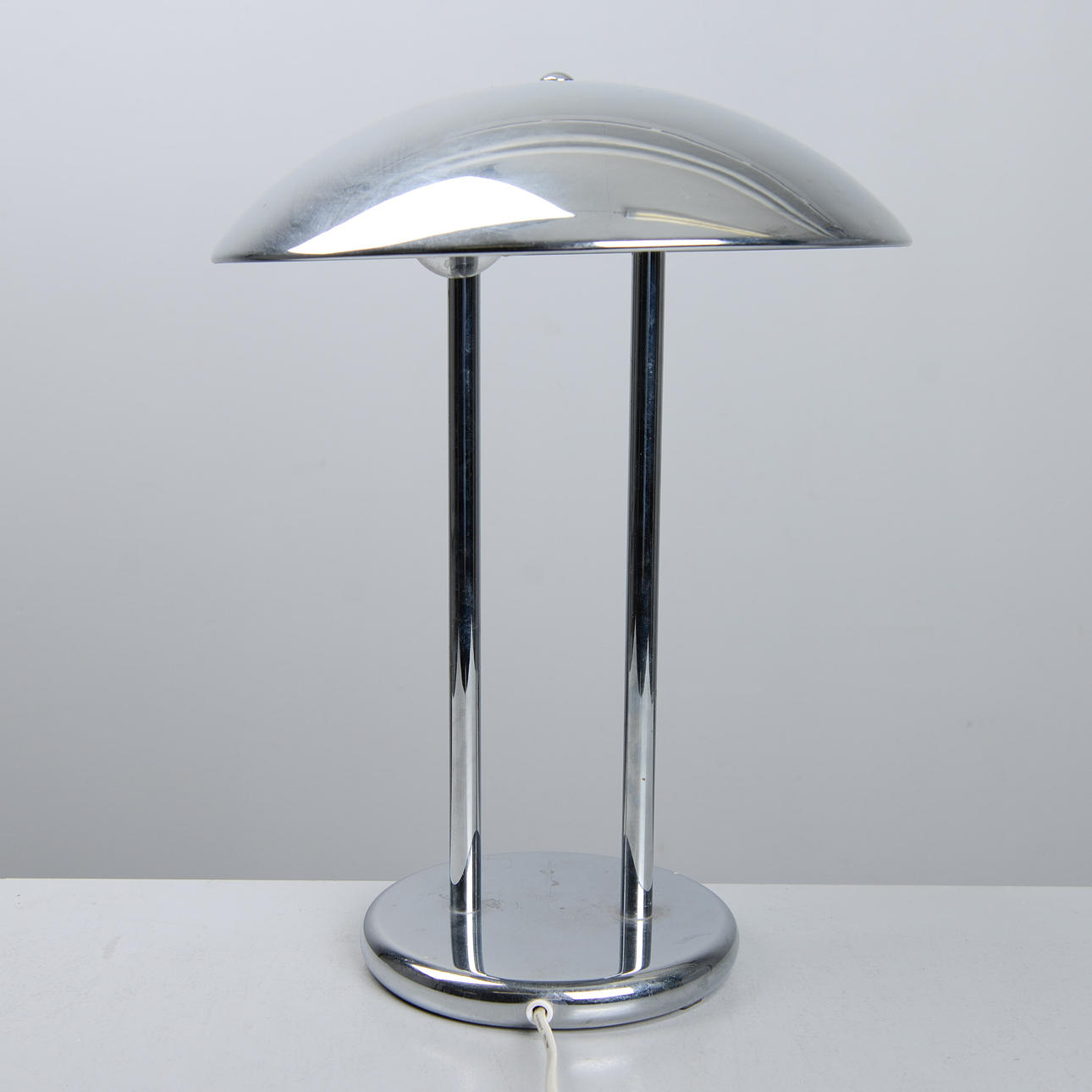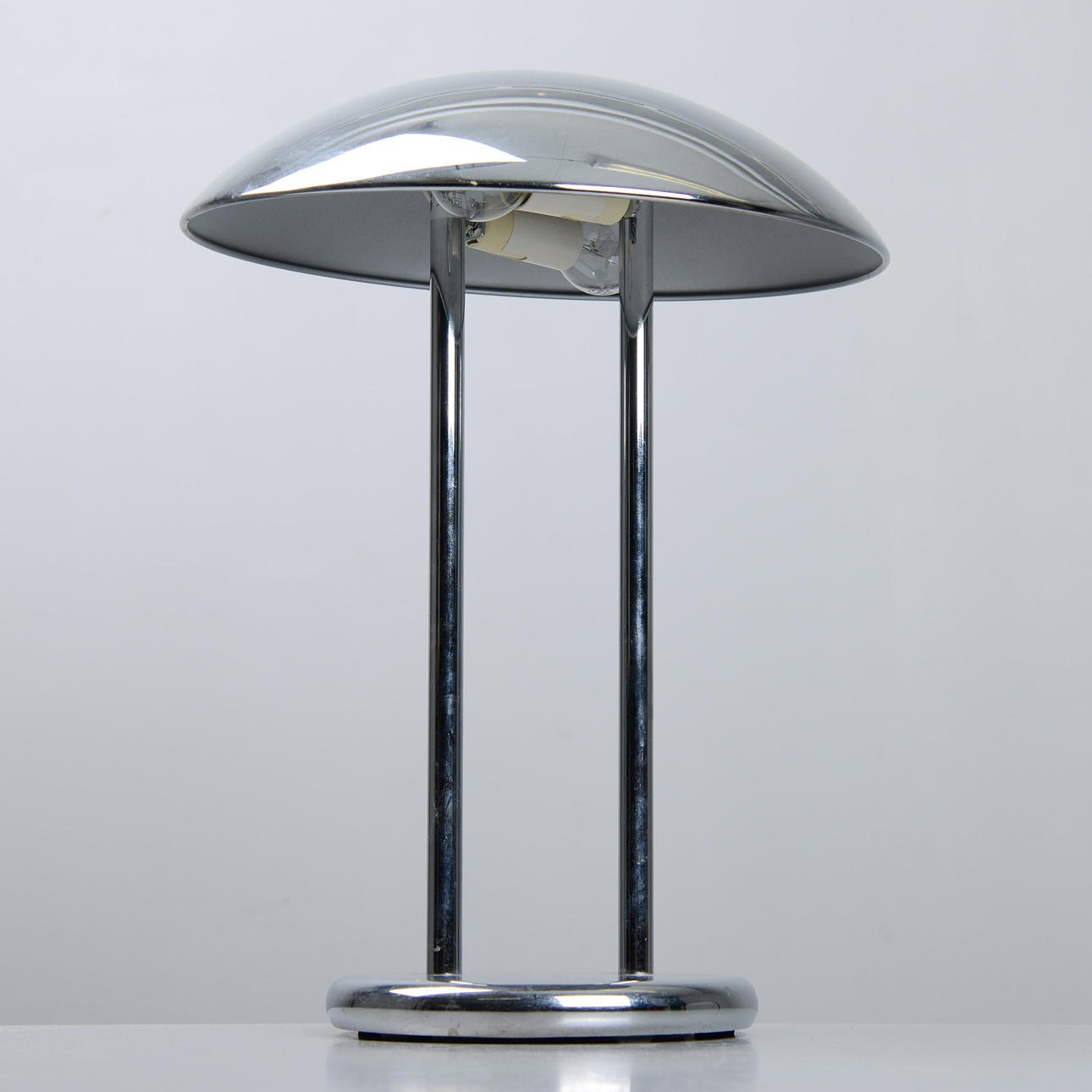 Mushroom lamp in chrome-plated metal. Height 44 cm.