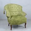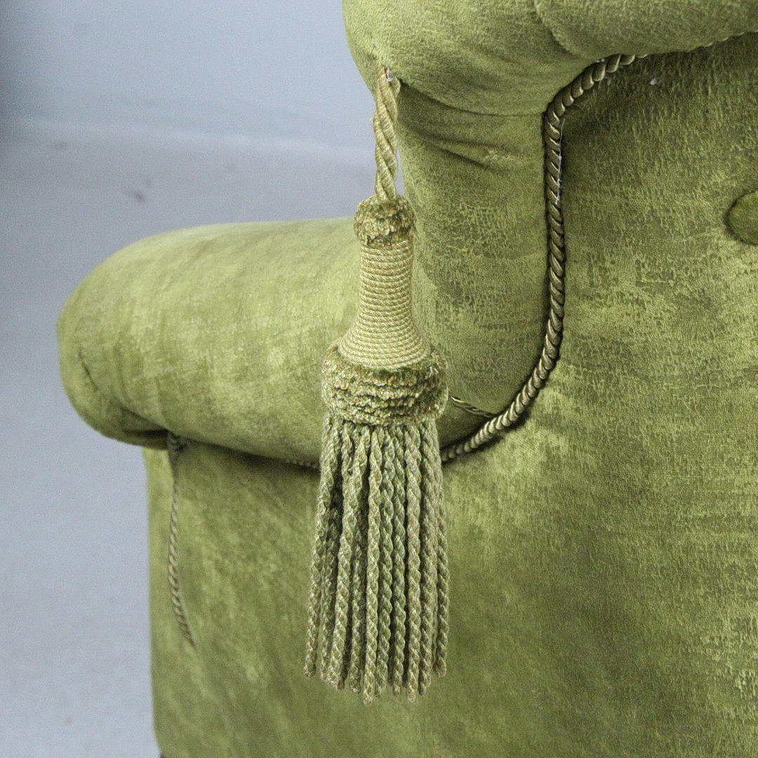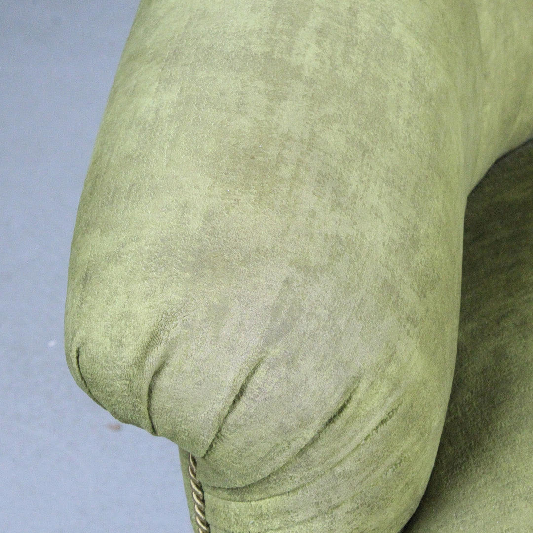 Armchair, reupholstered and covered in green fabric, Dimensions approx.: H. 91 cm, seat height 42 cm, W. 82 cm, D. 84 cm.