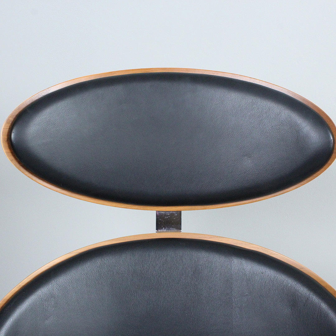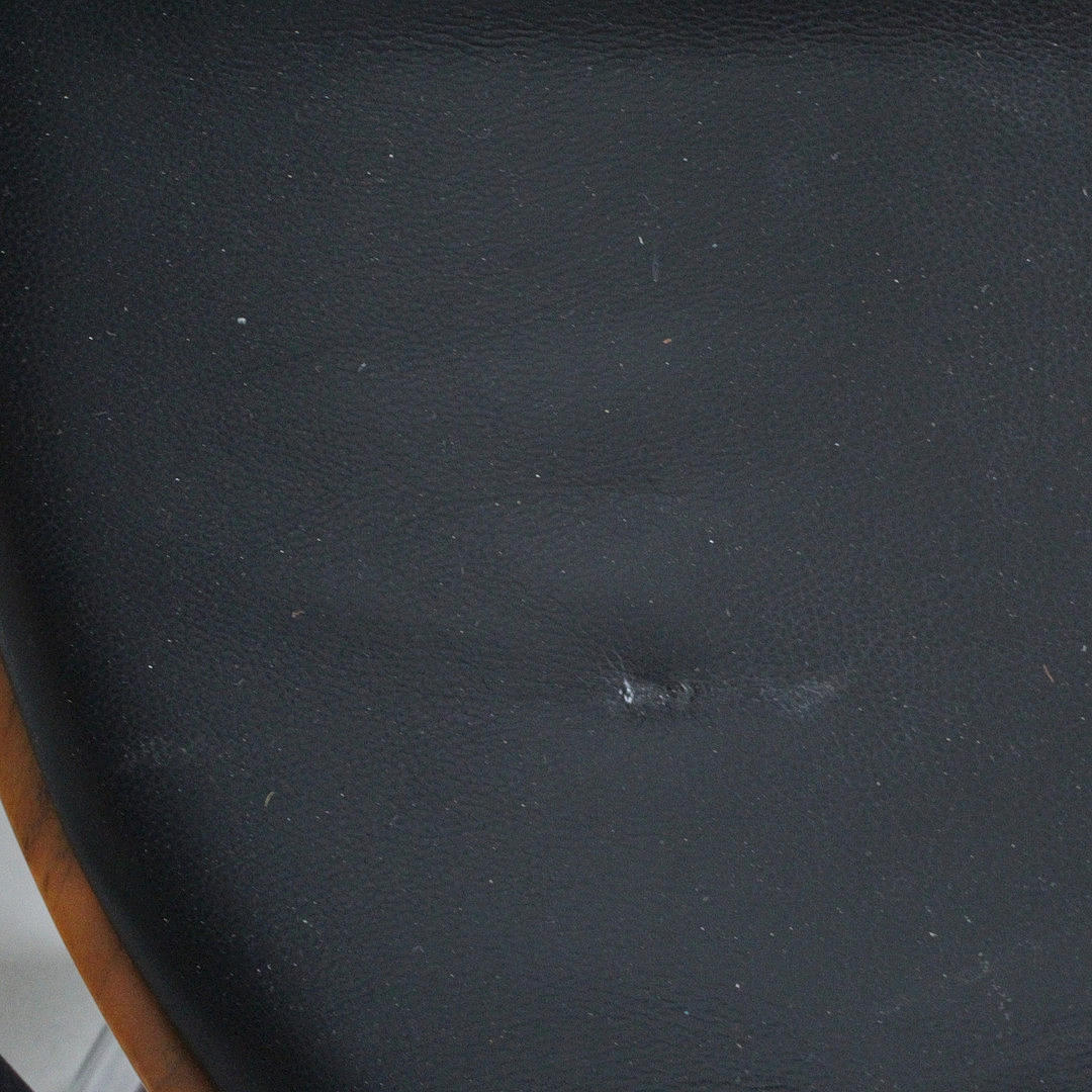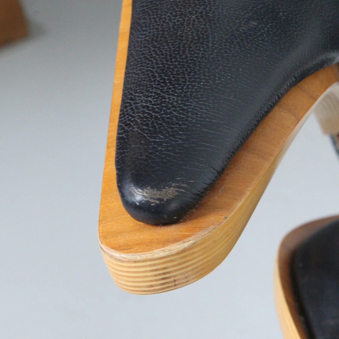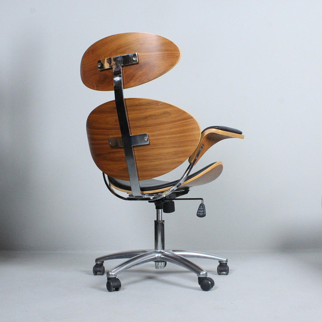Office chair / armchair on casters, bent plywood construction, upholstered seat and backrest covered in black faux leather,