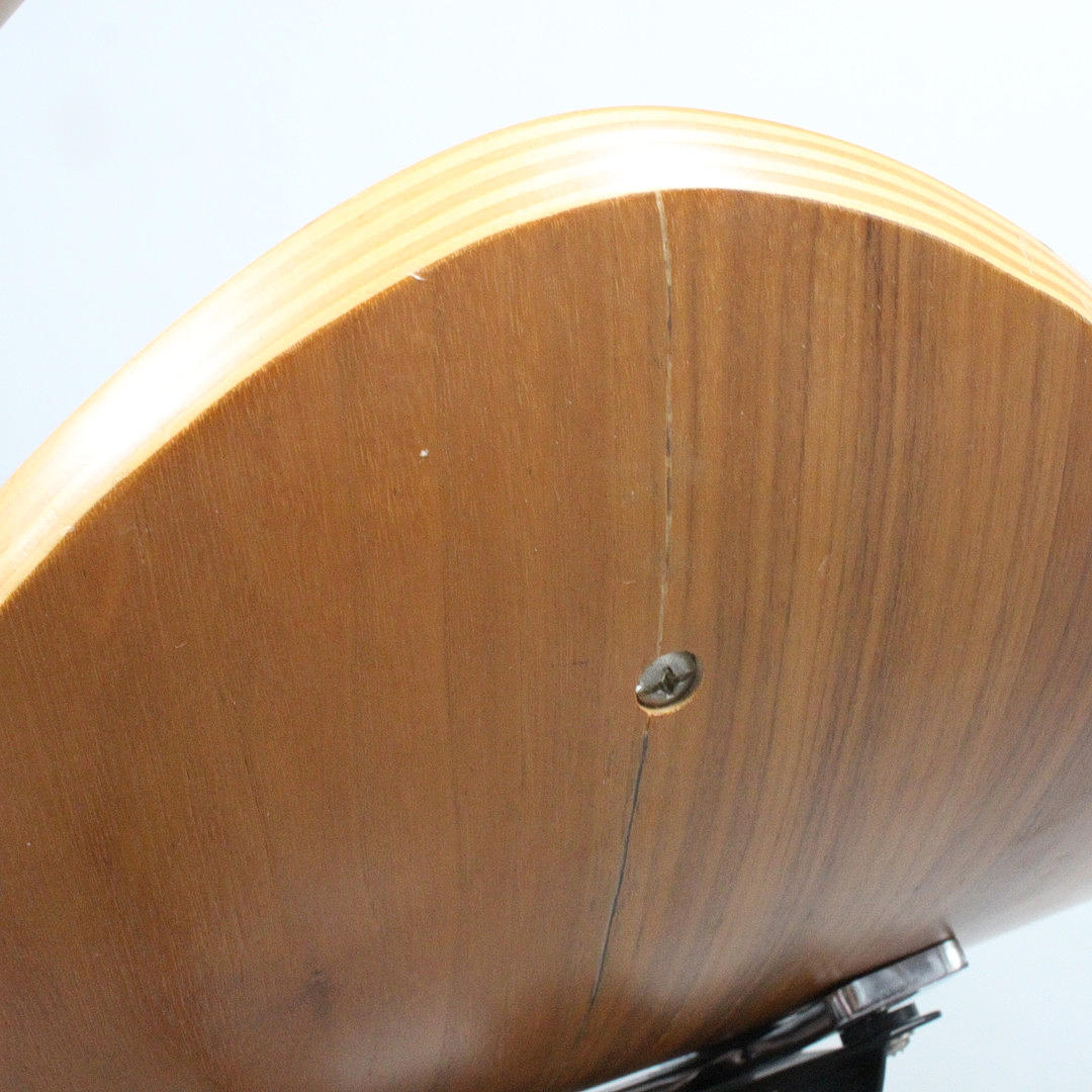 Wear and rubbing consistent with age, partial scratches and abrasions, pressure marks in the upholstery, stress crack in the wood, height adjustment mechanism defective.