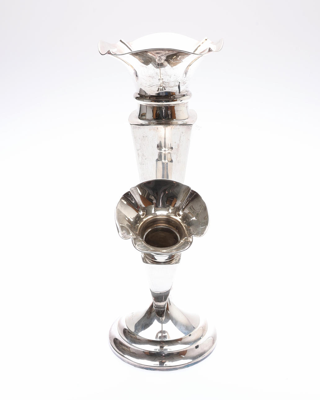 Gross weight 1382grs. Tarnishing and scratches. Very small dents/nicks, one removable vase with repair to end.