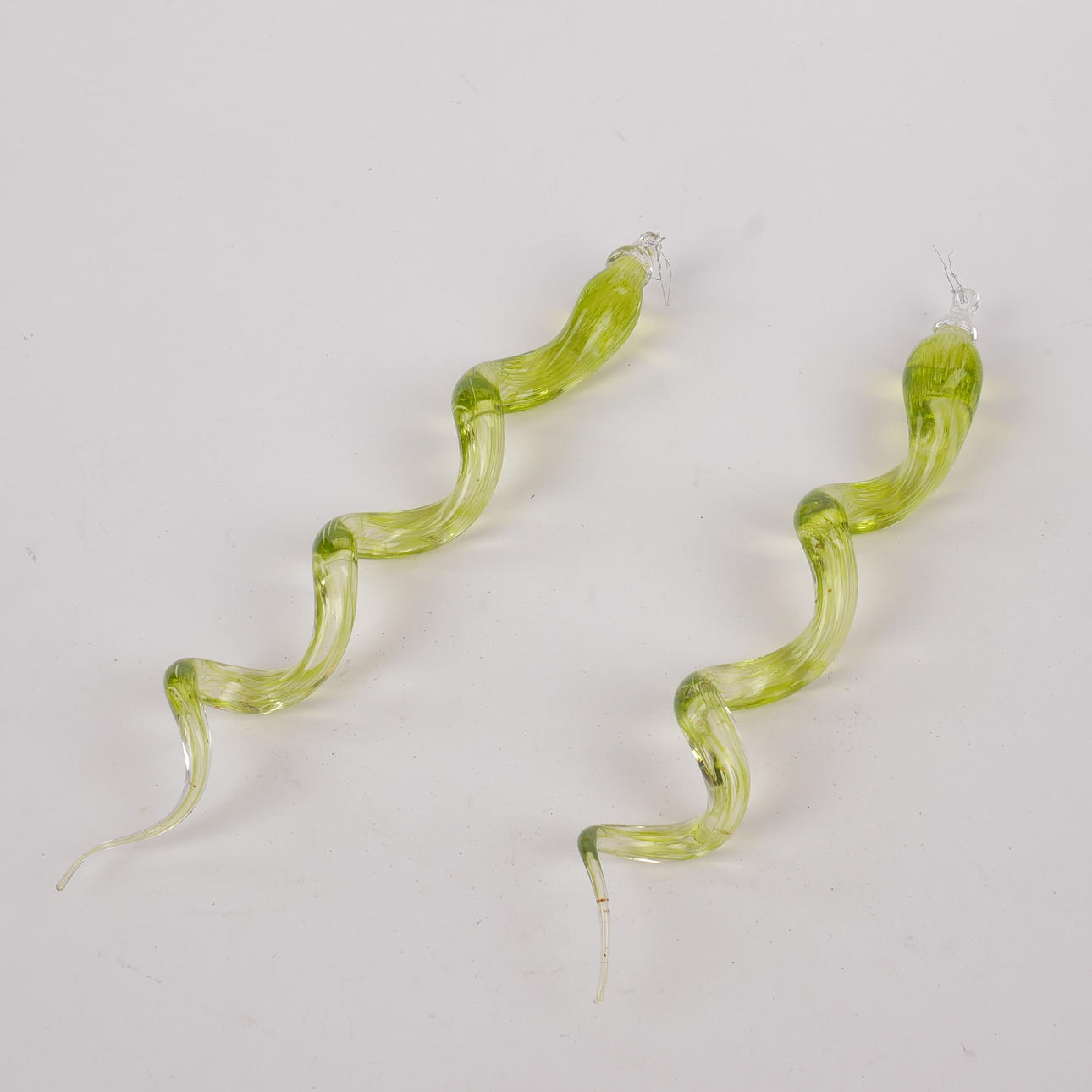 Spiral-shaped hangings, a pair. Length 32 cm.