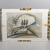The lithograph has a mount taped behind a plastic sheet, tape residue on the plastic sheet. Wear from use.