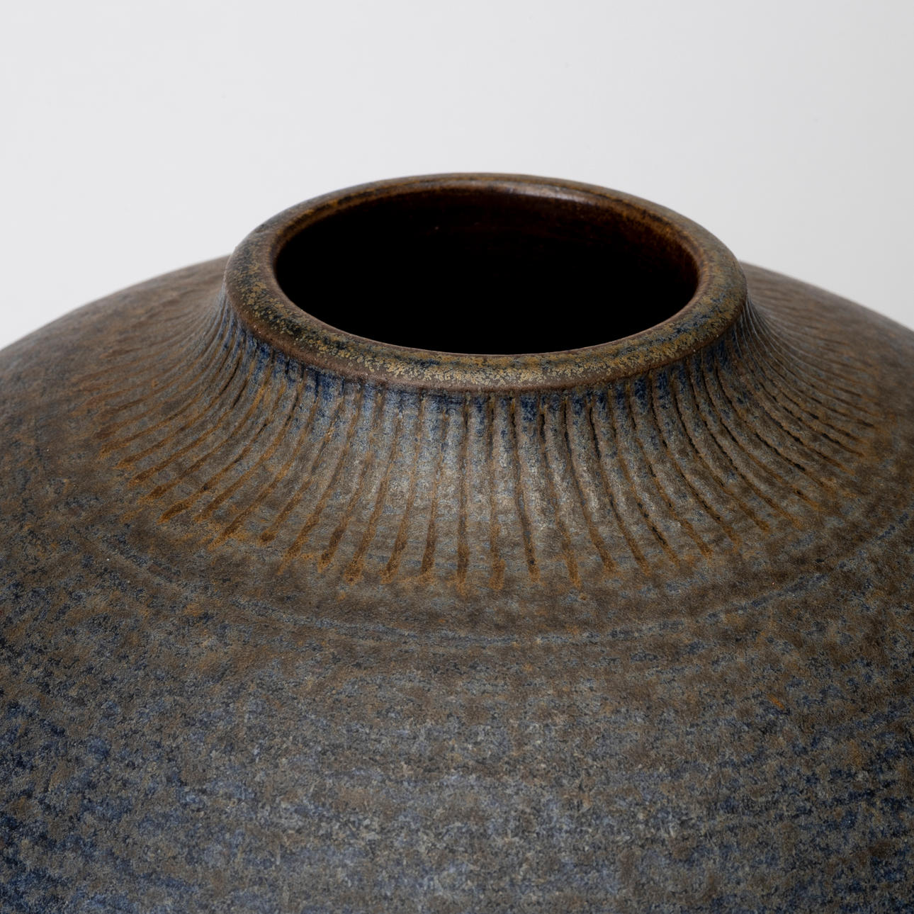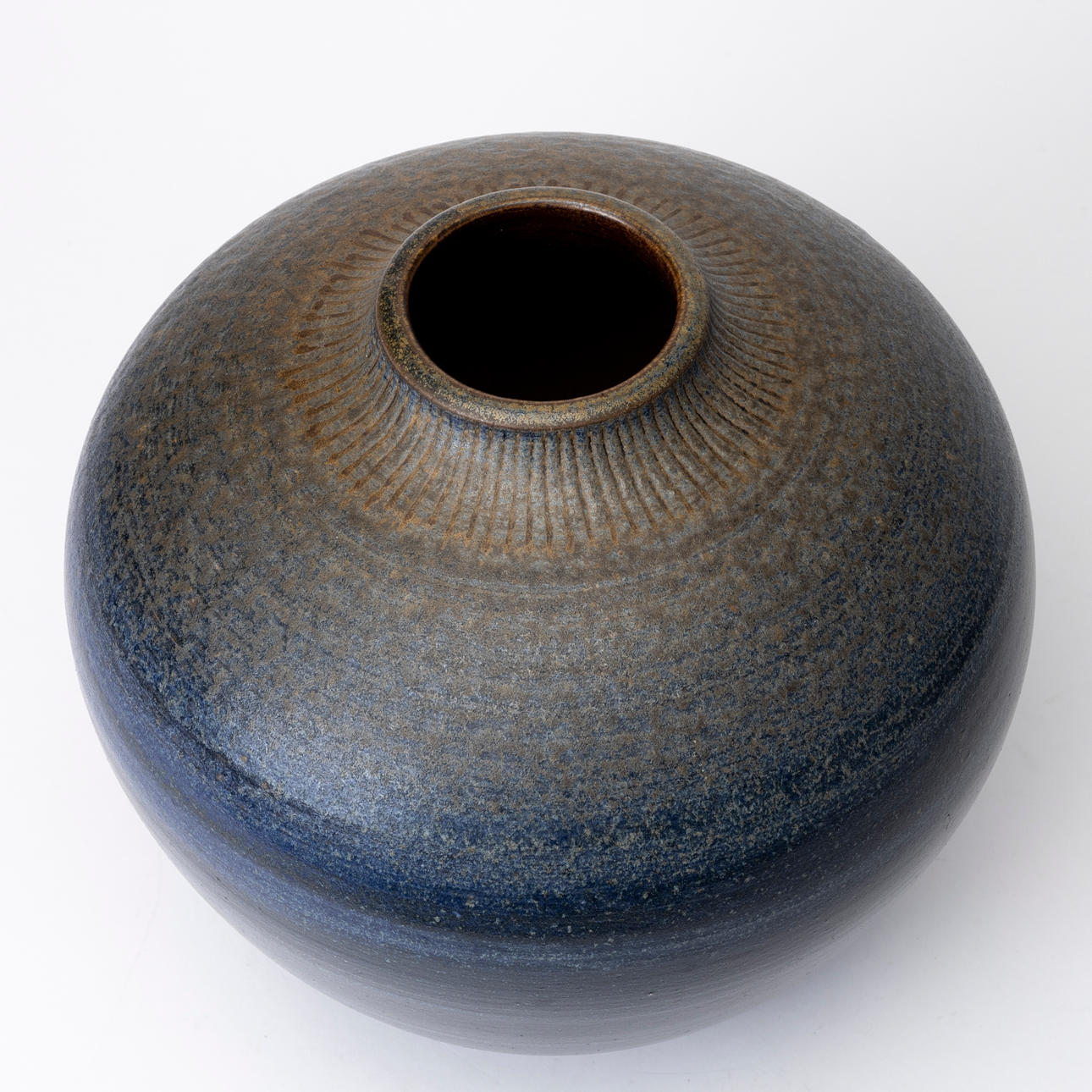 Blue mottled glaze with brown accents, height approx. 27 cm.