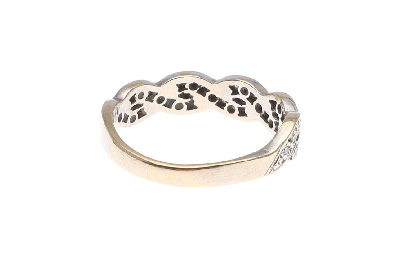 of scrolling design, mounted with single-cut diamonds, 3.1 grams.