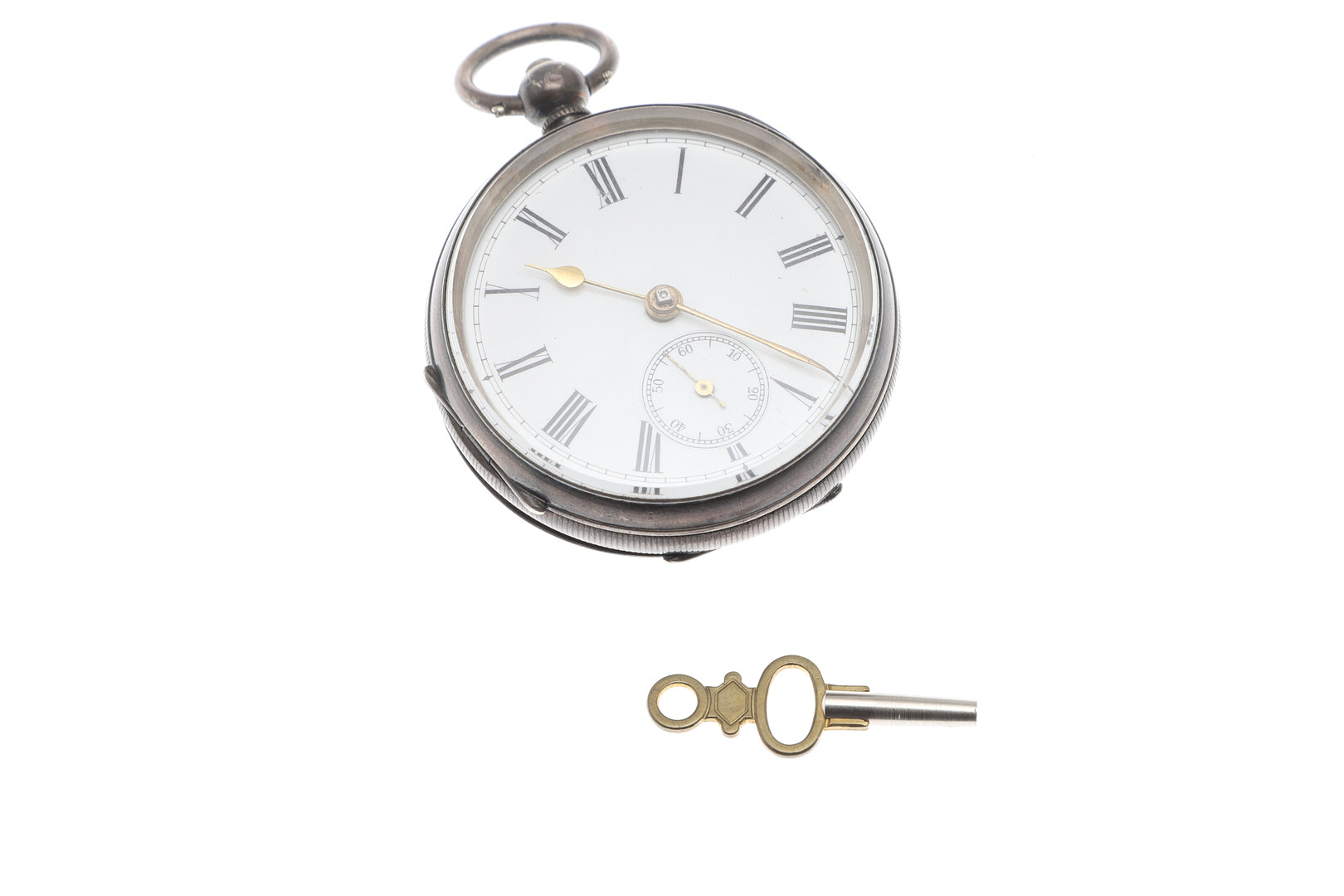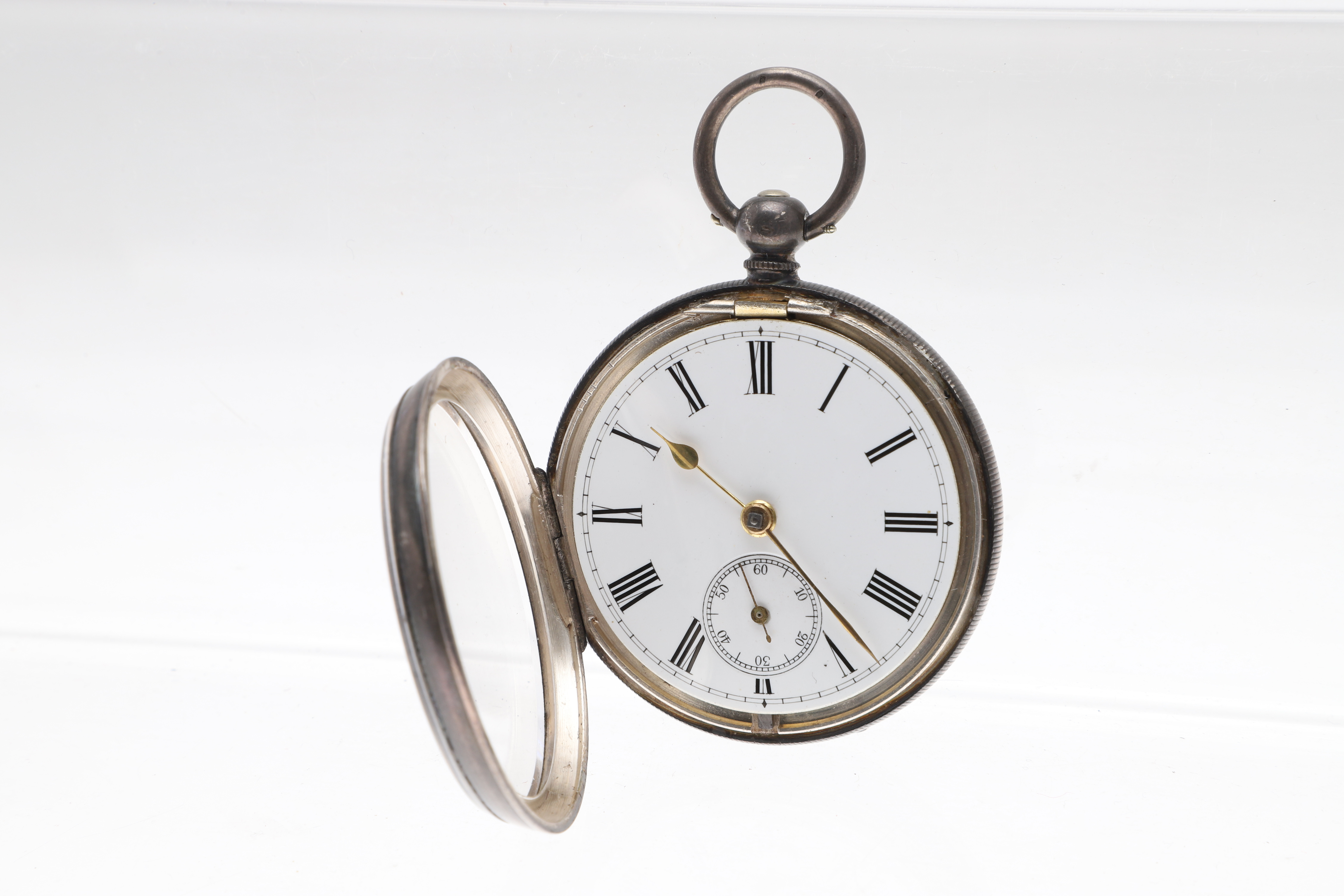 5027746. A SILVER OPEN FACED POCKET WATCH.