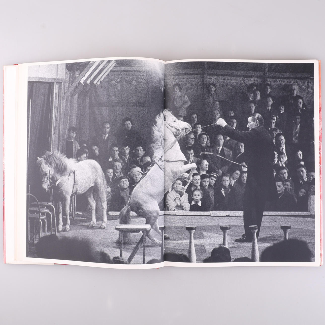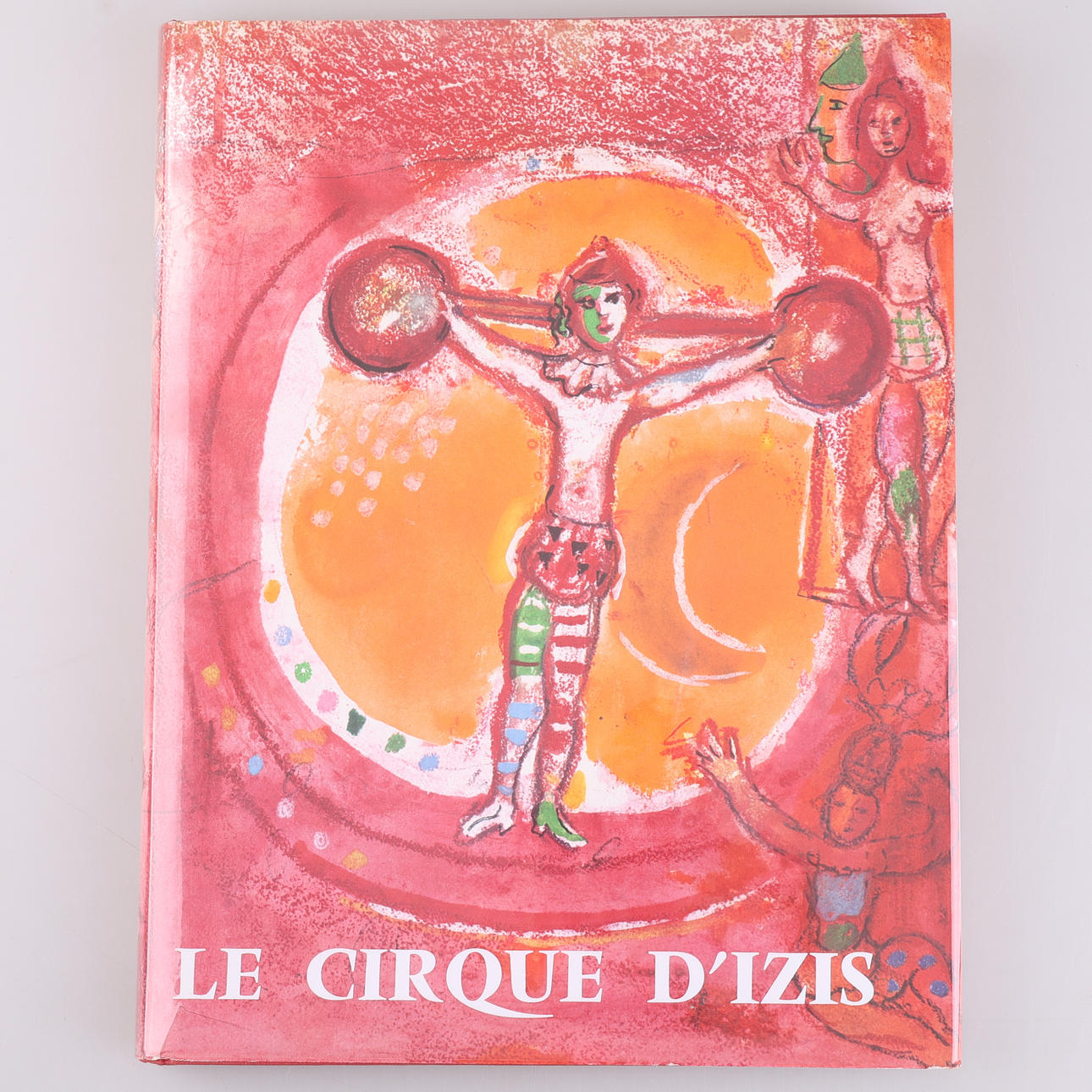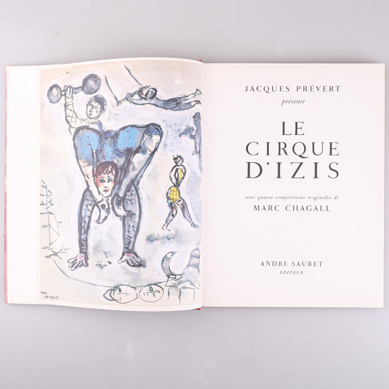 Biedermanas, Izis, Jacques Prevert, Marc Chagall et al. Jaques Prévert présente Le Cirque d'Izis avec quatre compositions originales de Marc Chagall. André Sauret, Monte Carlo, 1965. Folio in a cloth binding decorated in black with an illustrated dust jacket and a transparent extra cover. Primarily a photo book with Izis Bidermanas' fine images, but also including four original color compositions by Marc Chagall. Approx. 33x25.5 cm.