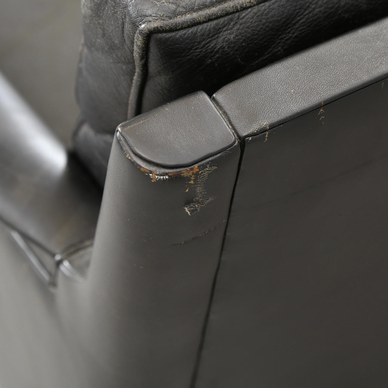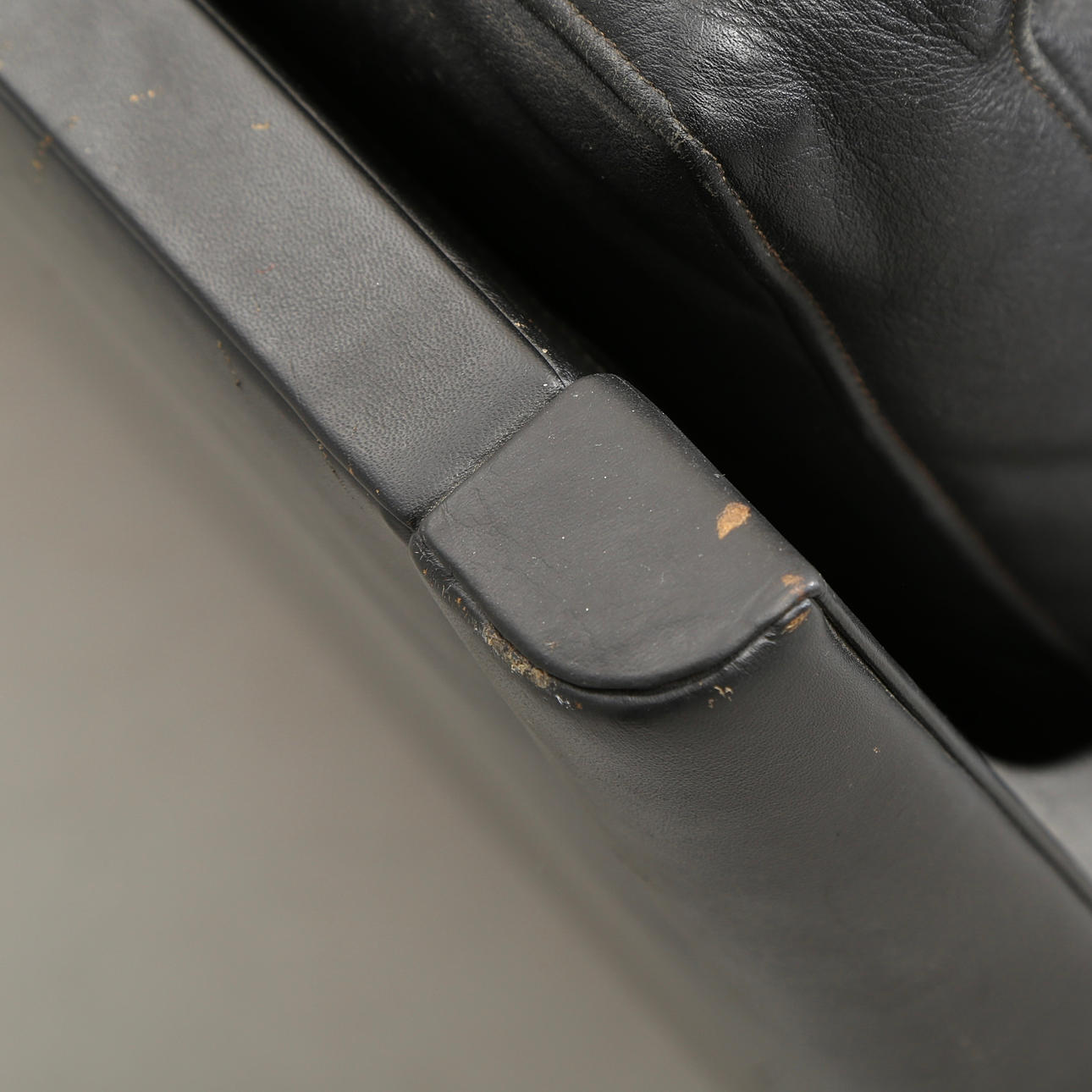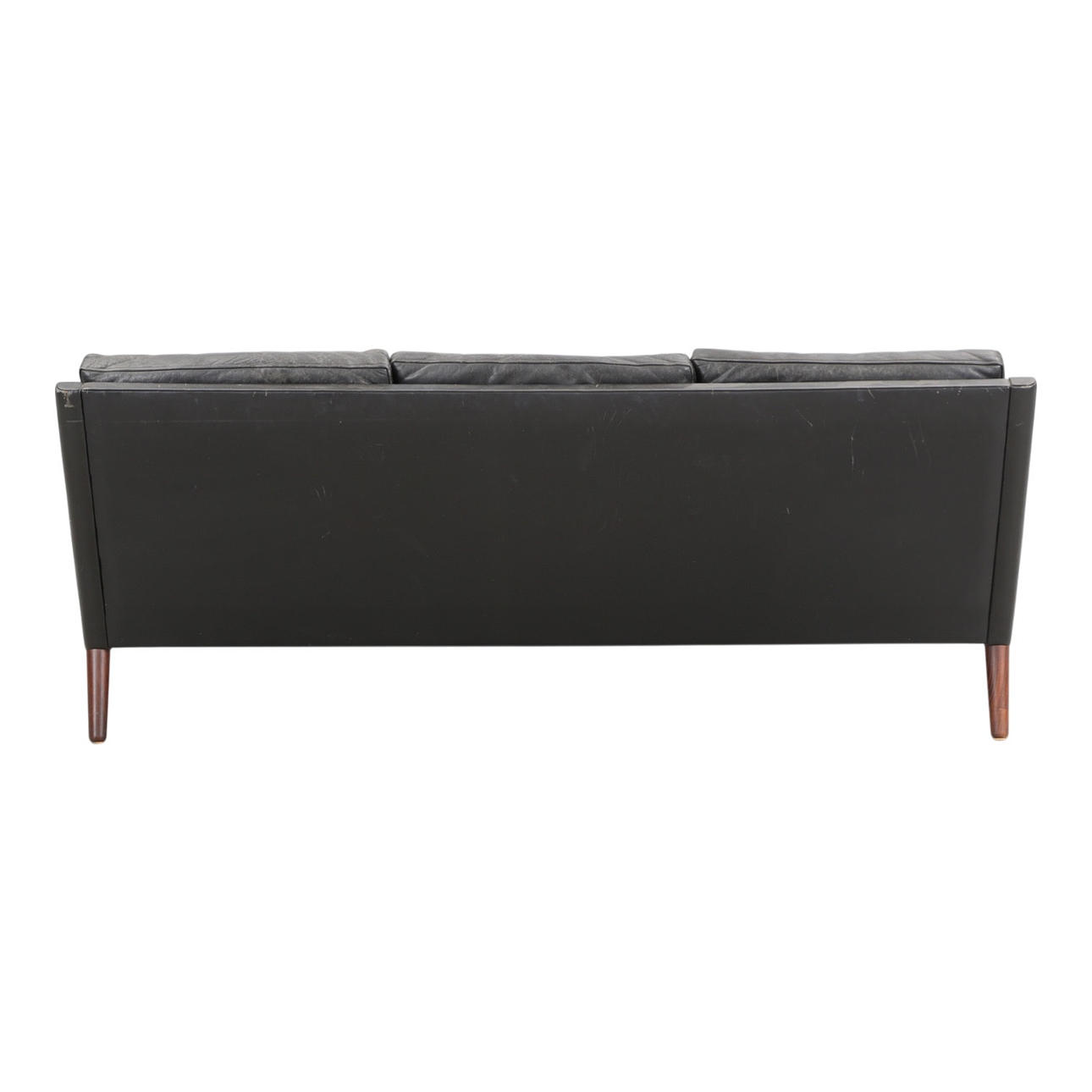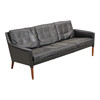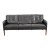 Three-seater sofa upholstered in black leather, tapered legs of solid rosewood. Designed in 1955 and manufactured by Centrum Møbler, model 55. H. 74, W. 182 cm. Sh. 42 cm.
