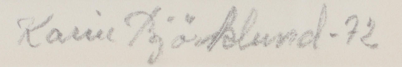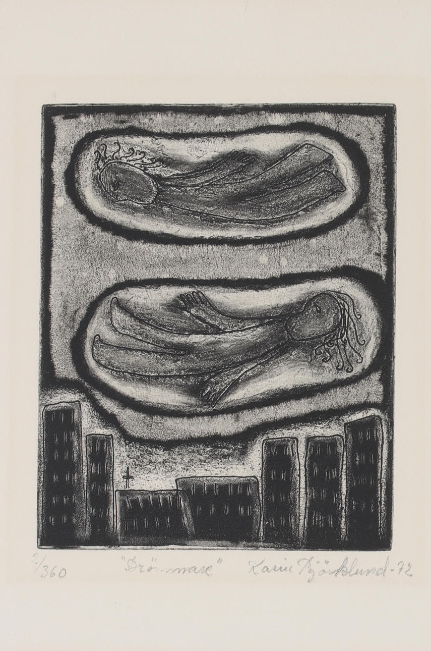KARIN BJÖRKLUND. "Drömmare", etching, signed and numbered 2/360, dated -72.