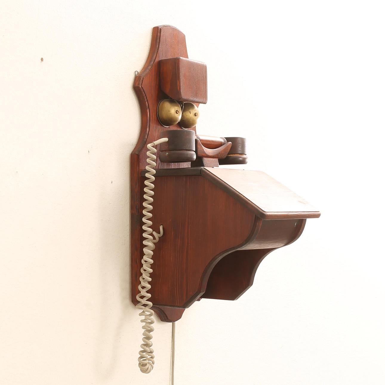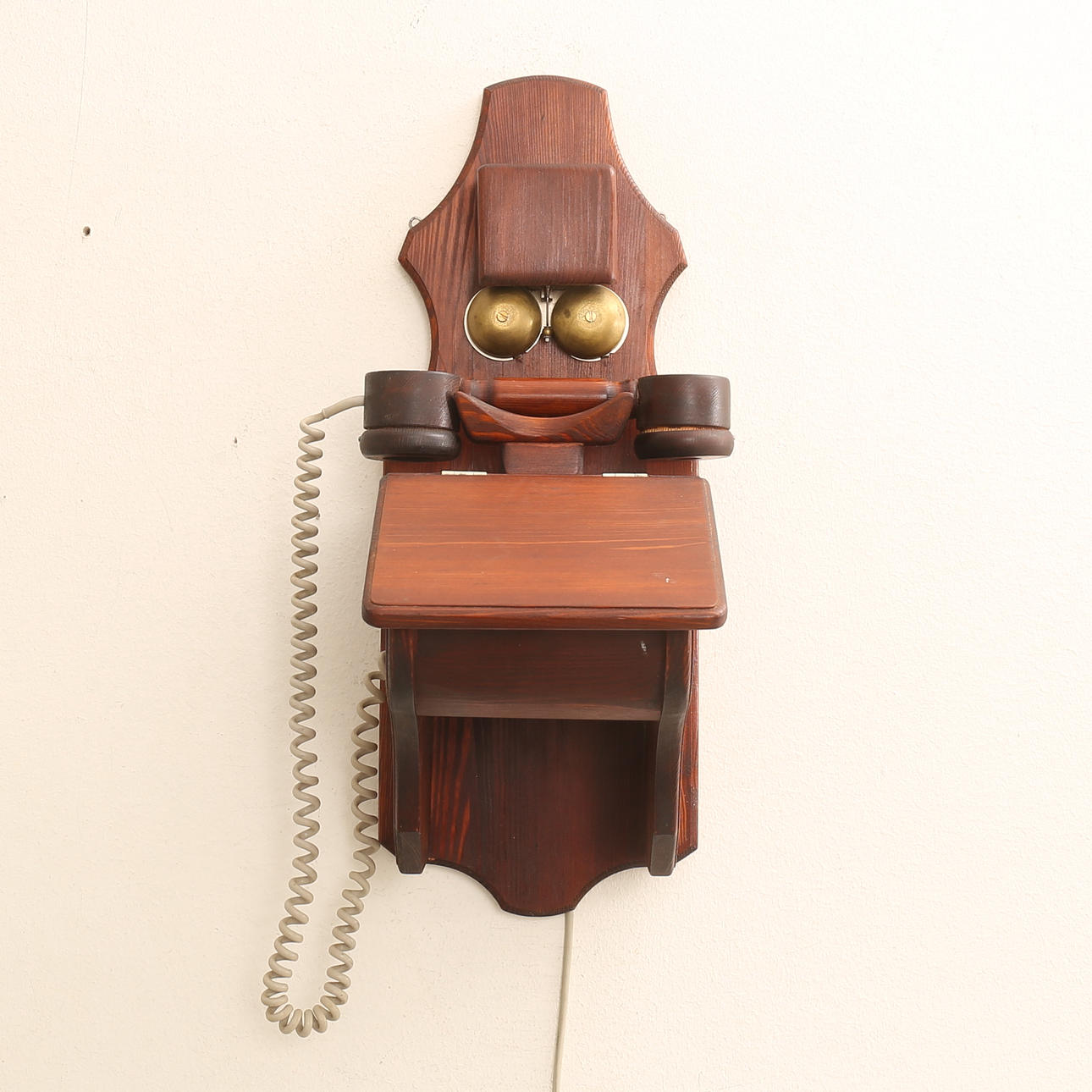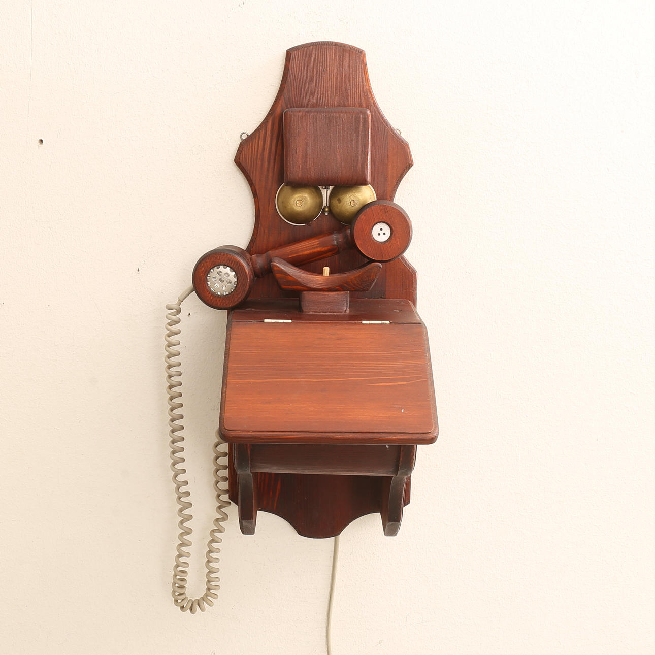 WALL TELEPHONE, wood, signed.