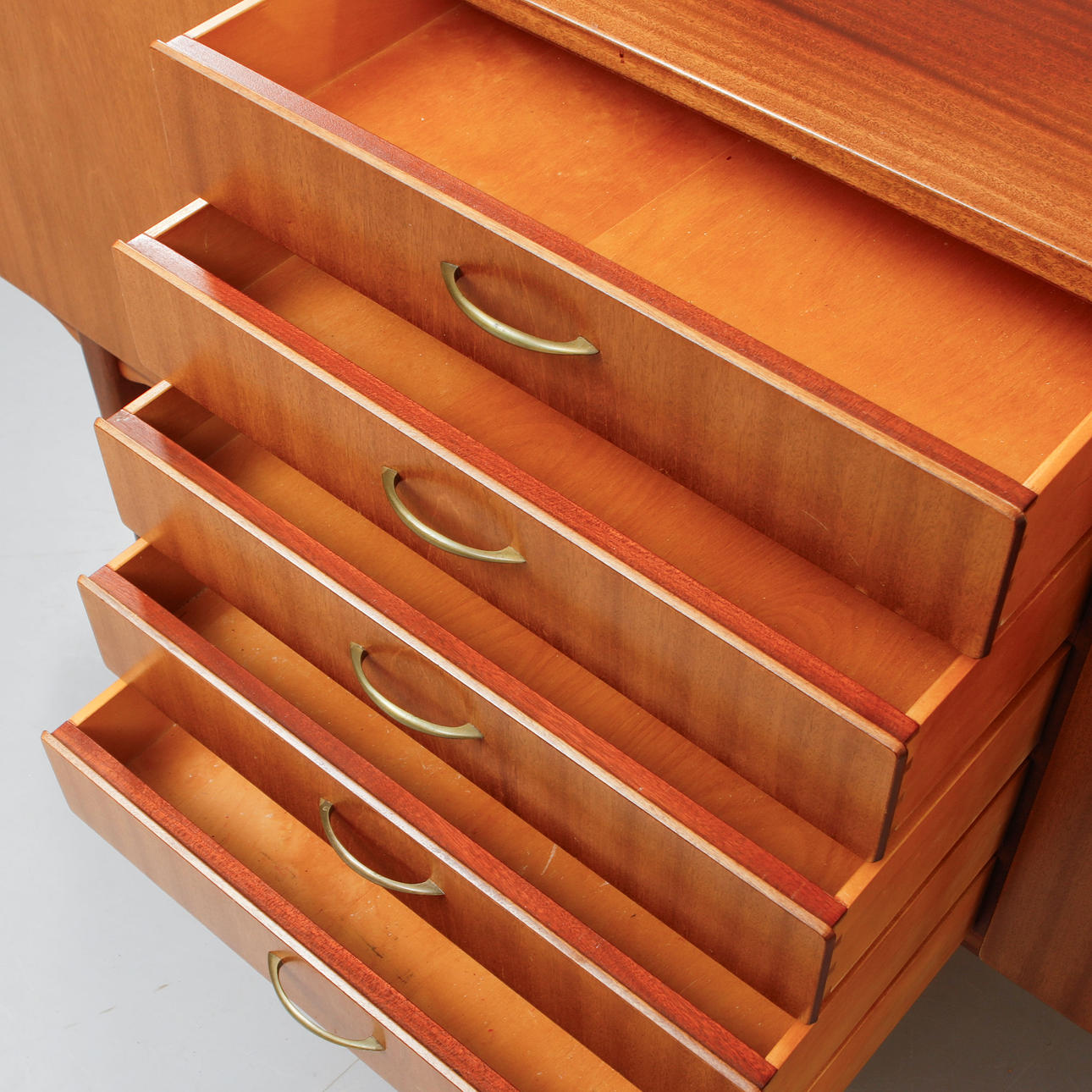 Length approx. 165 cm, width approx. 43 cm, height approx. 83 cm. 5 drawers and 2 side cabinets.