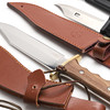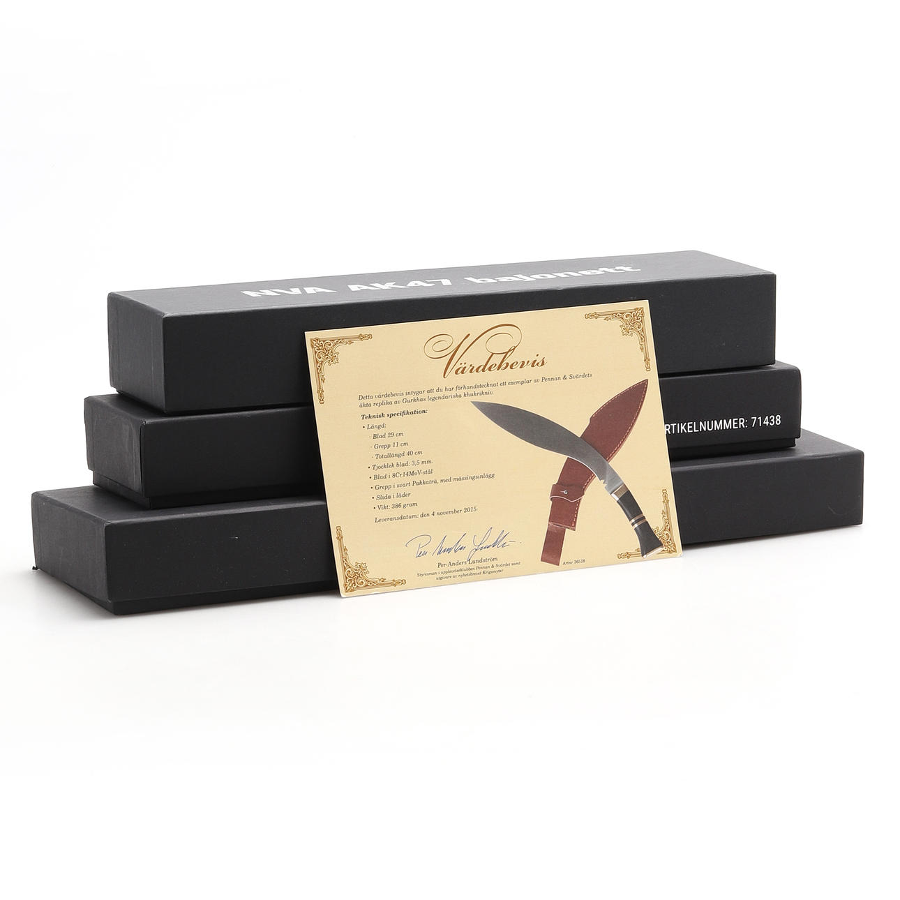 Khukri, length 43 cm. New AK47 bayonet, length 33.5 cm. Knife, Bowie Texas Rangers, length 37 cm. In original boxes, length 38 to 47 cm.