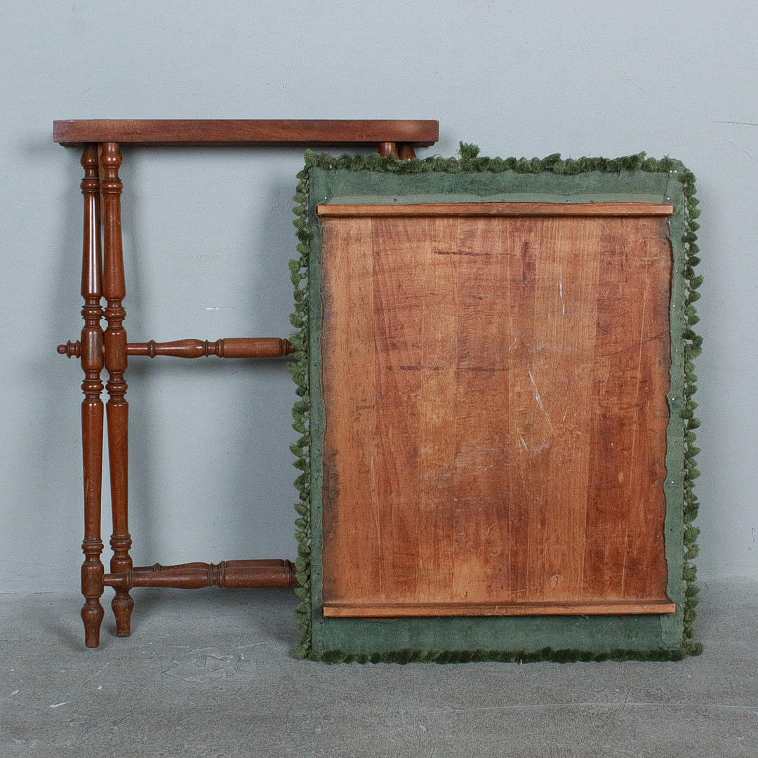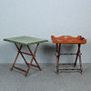 Two serving tables / Butler's trays, wooden construction, folding construction, tabletop / tray removable, top covered with fabric,