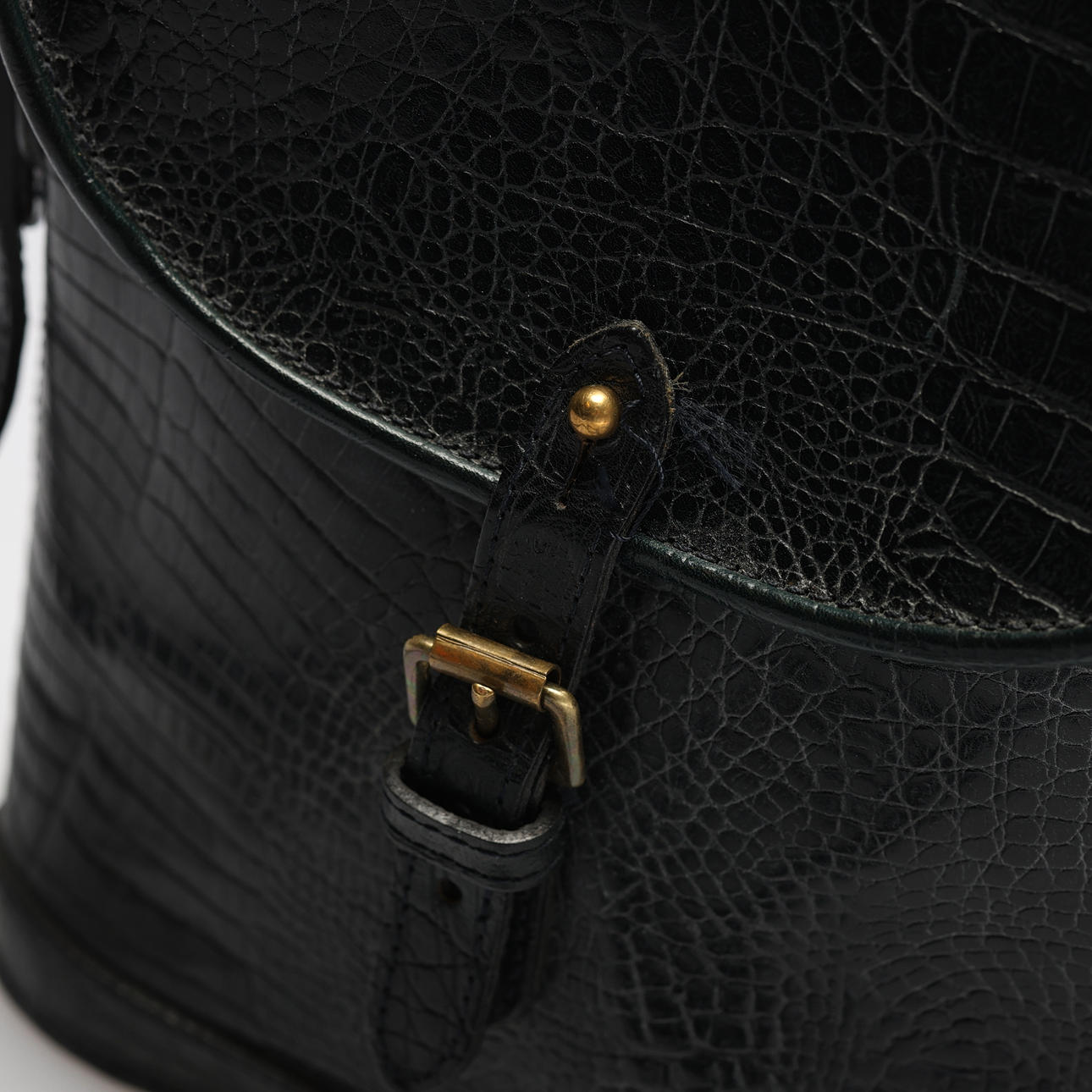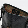 With adjustable shoulder strap and a buckle at the front. Marked Mulberry Made in England inside and 342063 on a brass plaque.