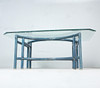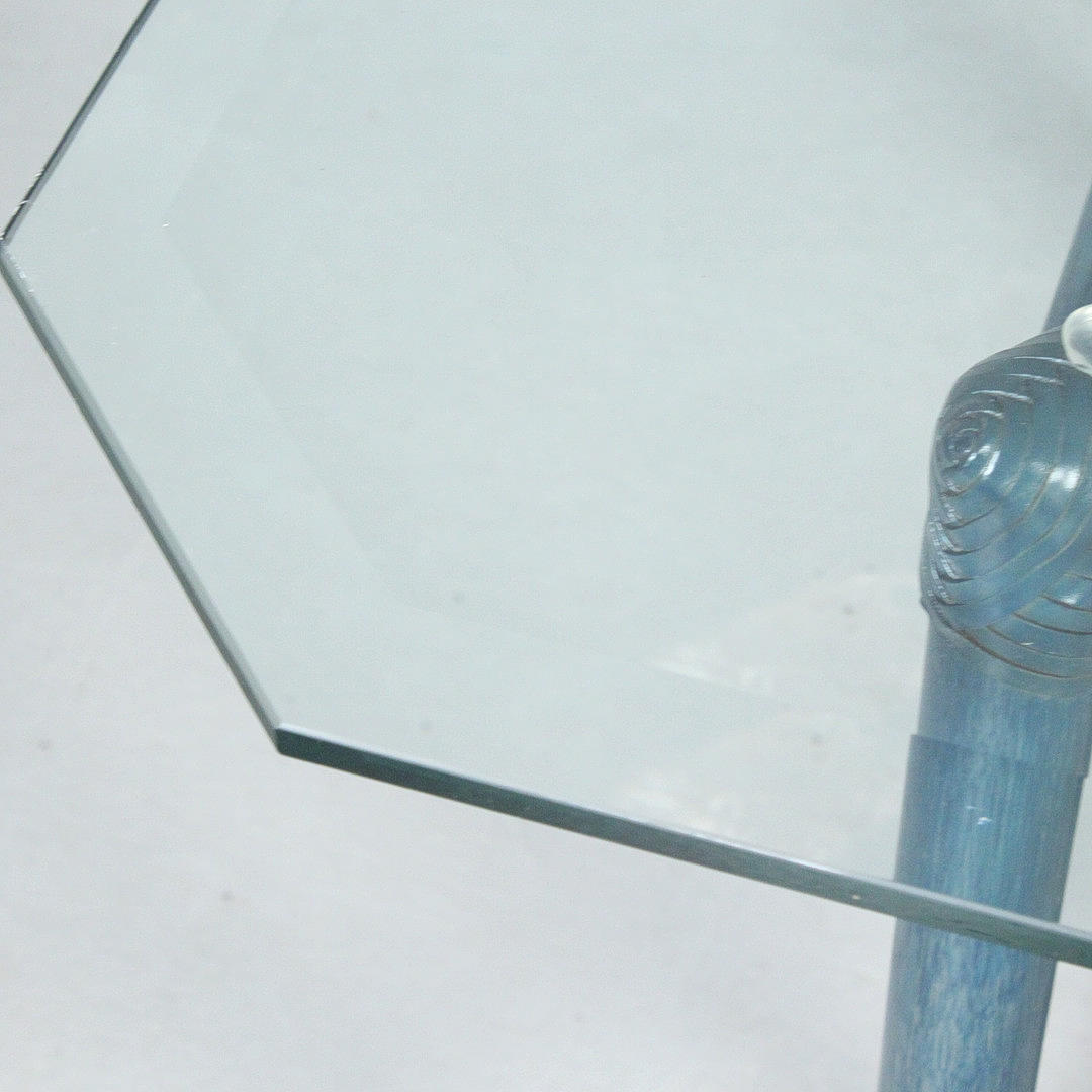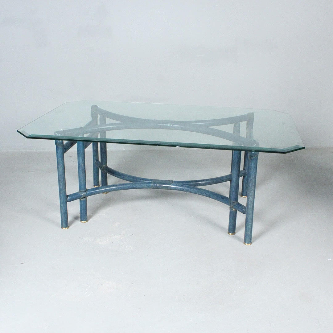 Rectangular coffee table, 1970s, bamboo construction, blue lacquered, loose glass top,