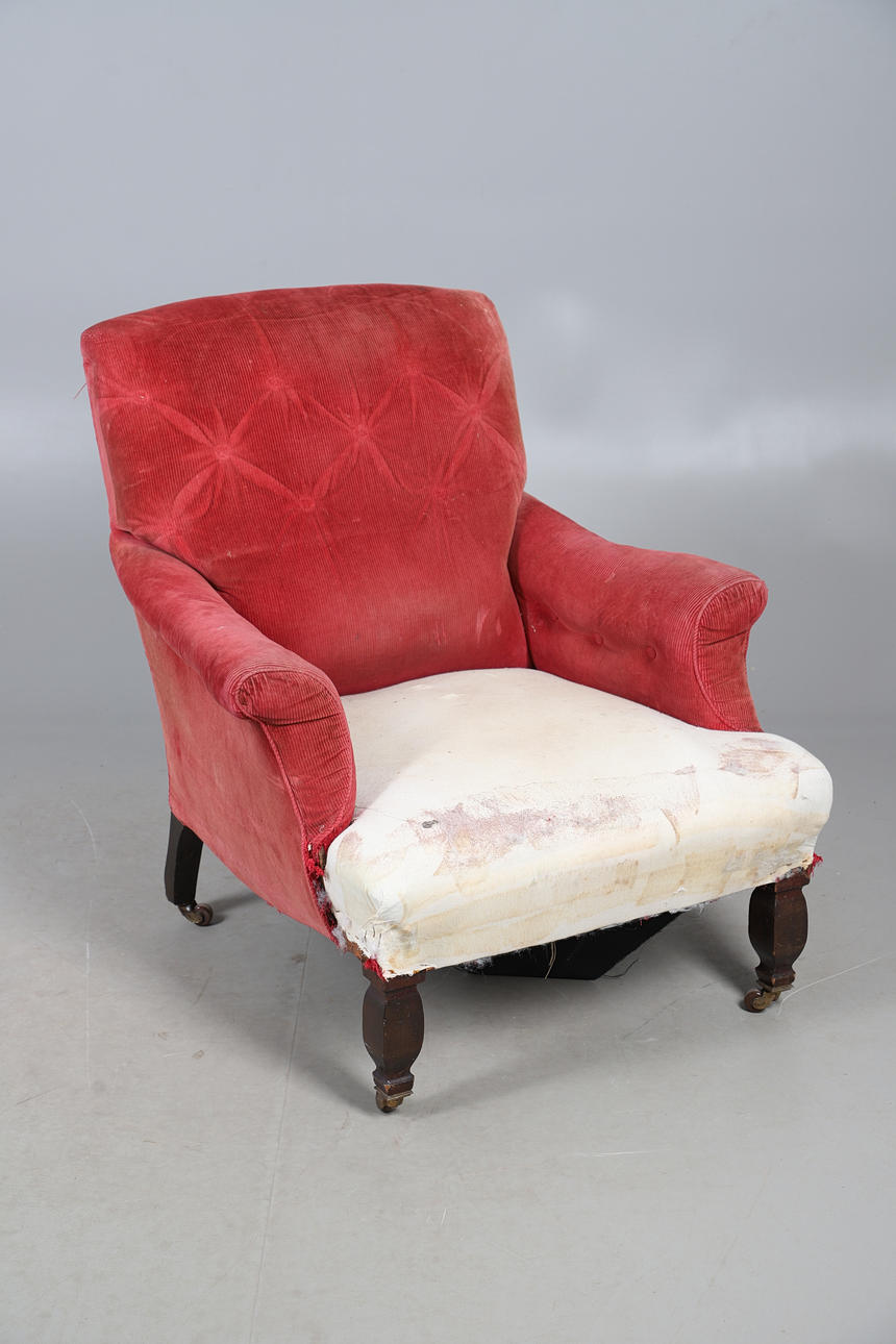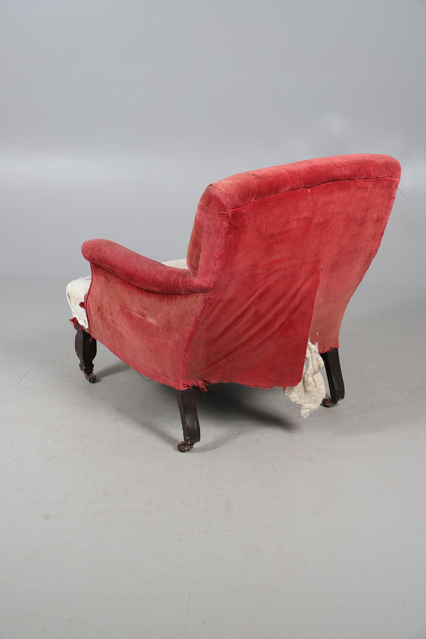 5028839. 19TH CENTURY BUTTON BACK ARMCHAIR.