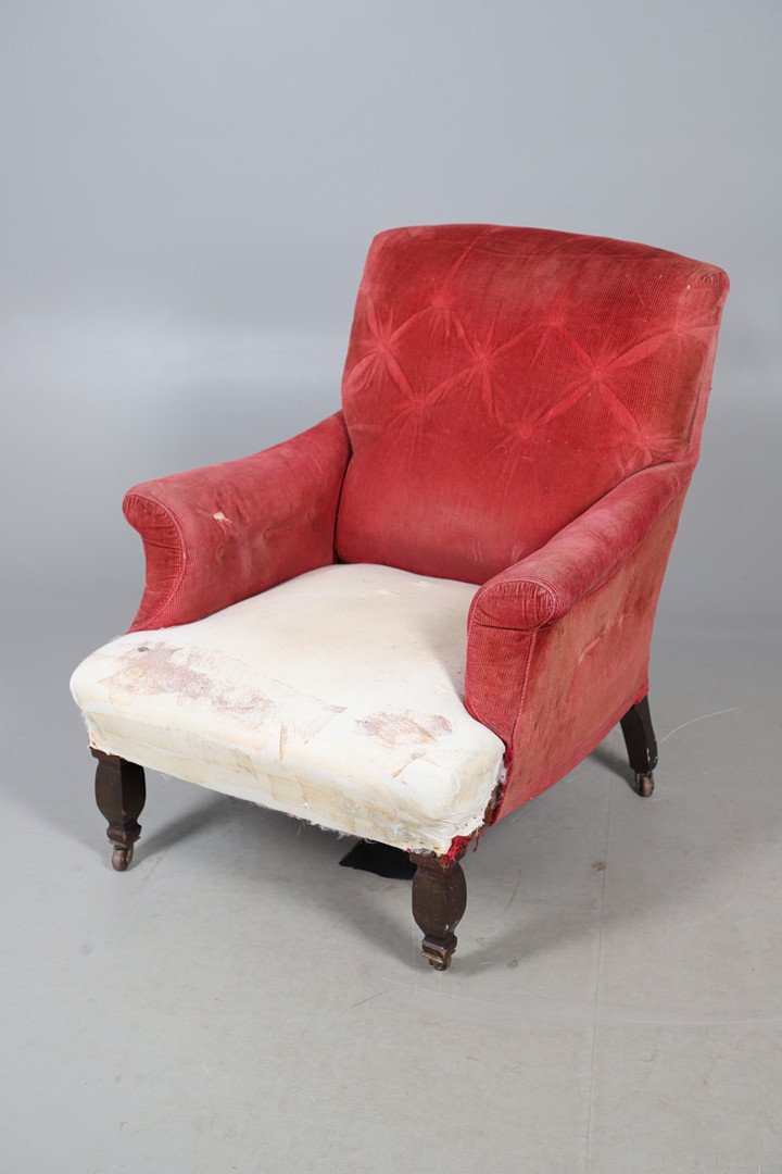 5028839. 19TH CENTURY BUTTON BACK ARMCHAIR.