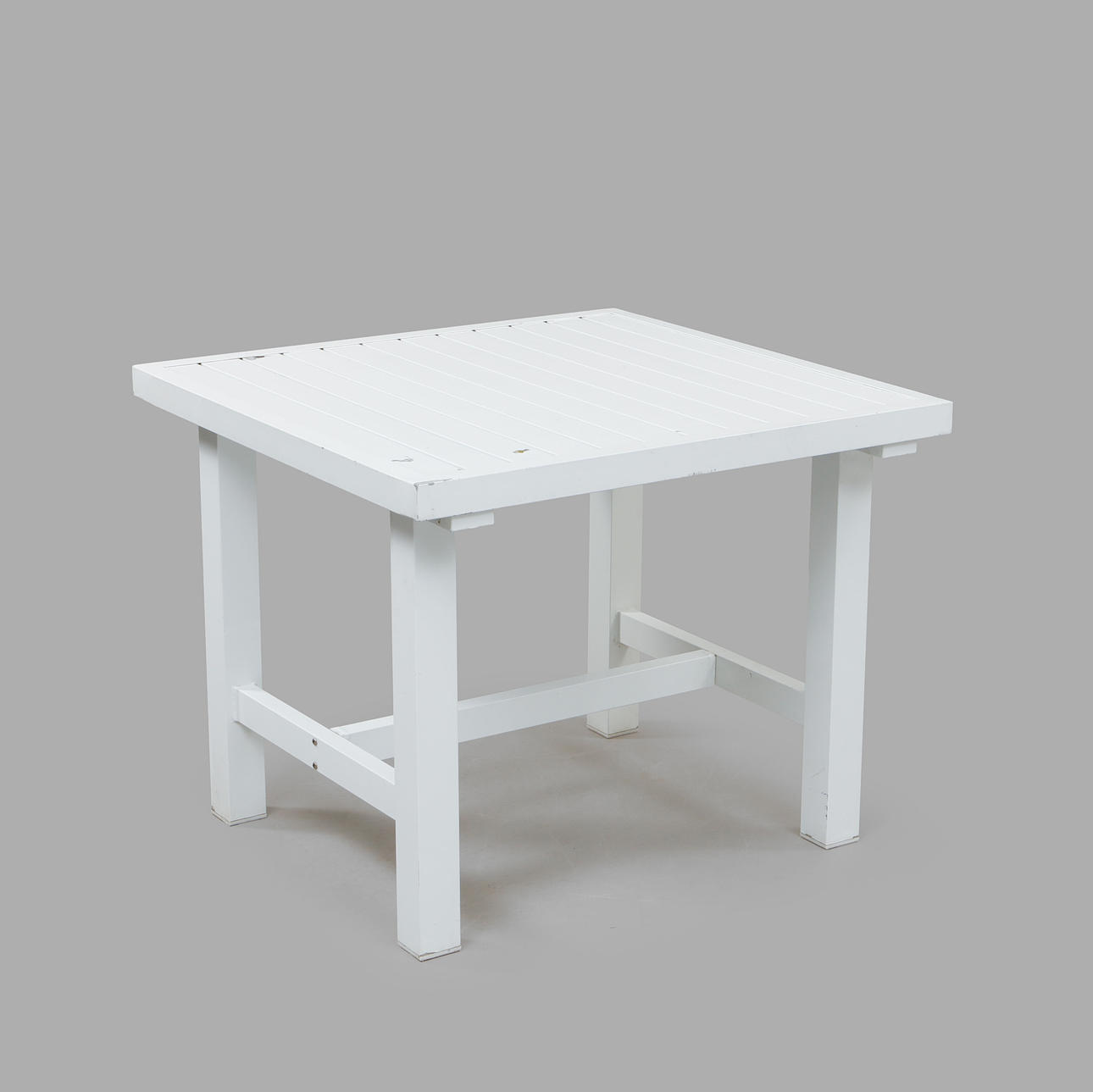 White-painted metal, approx. 80 x 83 cm, height 65 cm.