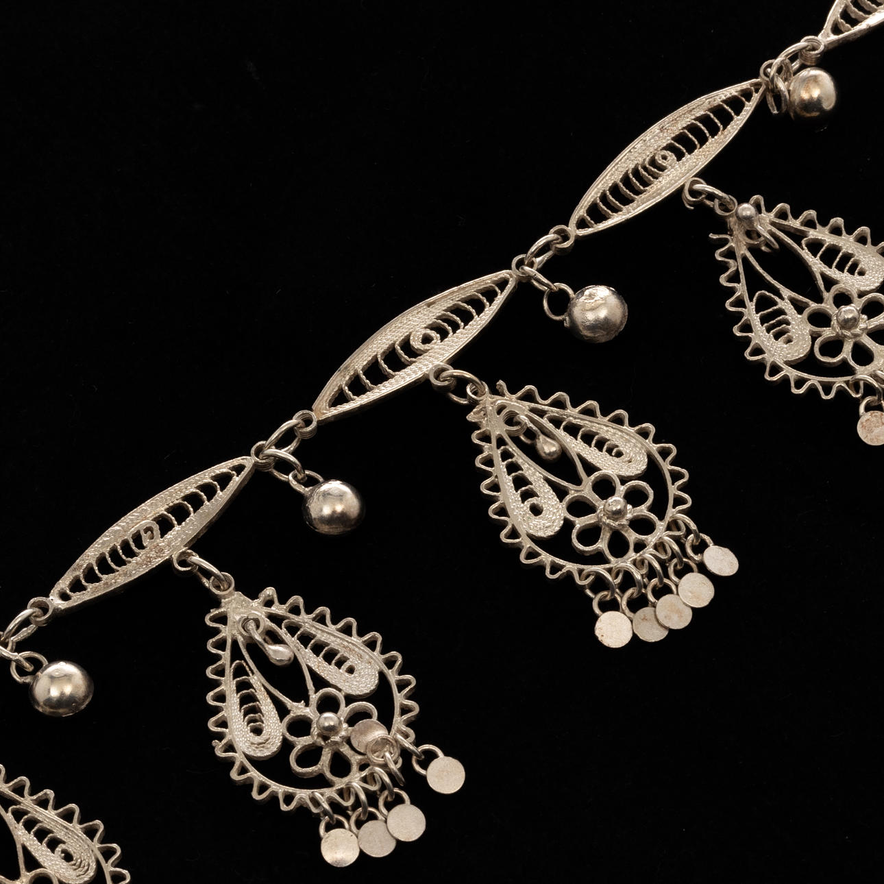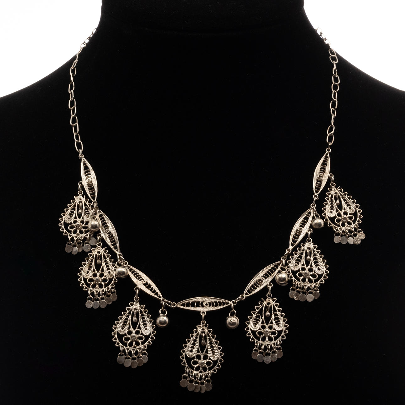 NECKLACE, Silver, filigree decoration.