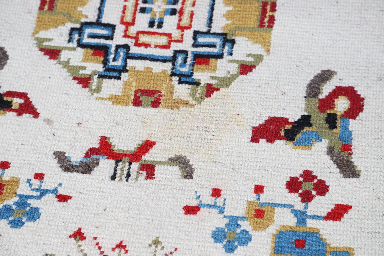 some fading to borders, some losses to fringes, needs cleaning.
