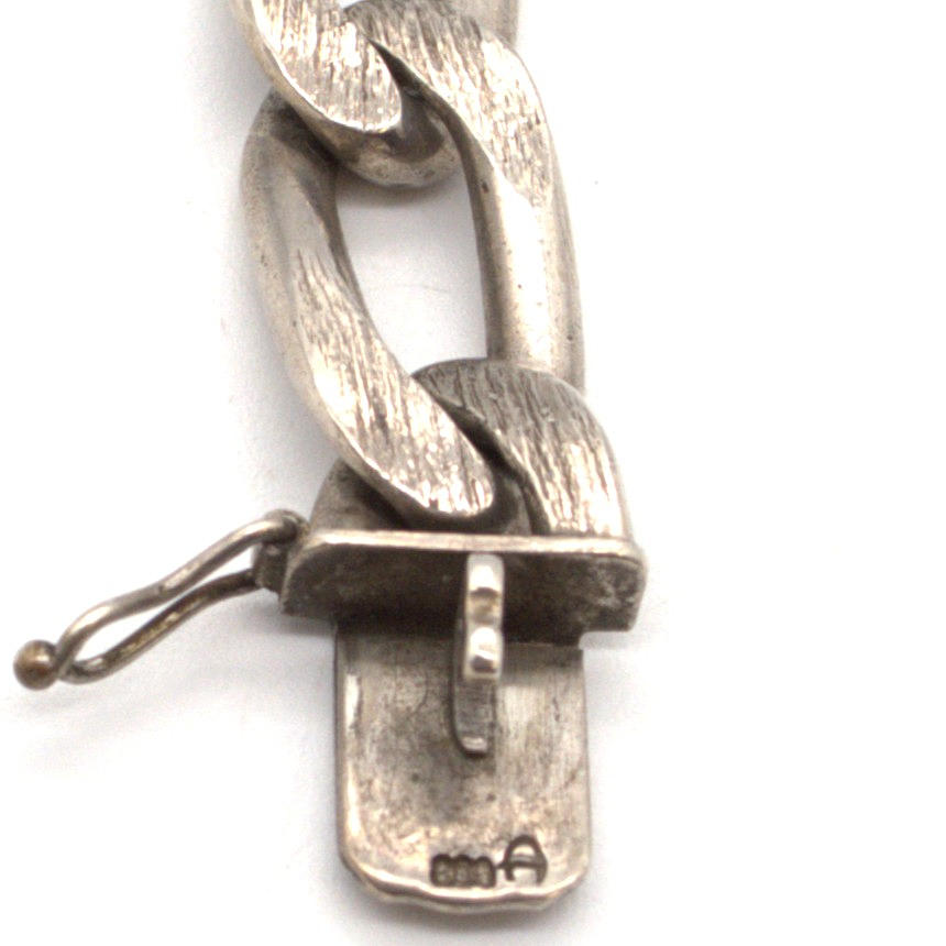 Designer bracelet in 800 silver, set with 4 lapis lazuli cabochons. Pierced setting. Manufactured circa 1960 in Germany. Weight: approx. 40.3 grams. Hallmarked with 800 and maker's mark.