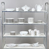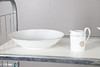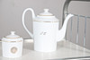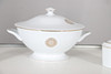 A Limoges France part dinner/tea service, to include a tea pot, 12 cups and 11 saucers, a milk jug, a lidded sugar pot, and 12 small plates. Also with a lidded terrine, a sauce boat, 5 various serving dishes, a large bowl, 12 bowls, 12 large plates, 12 other plates, and another. Size of largest dish, 40cm x 27cm. (QTY).