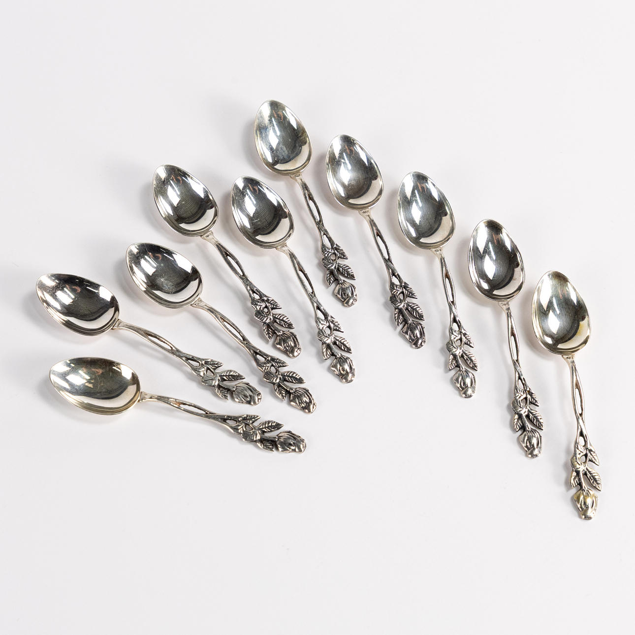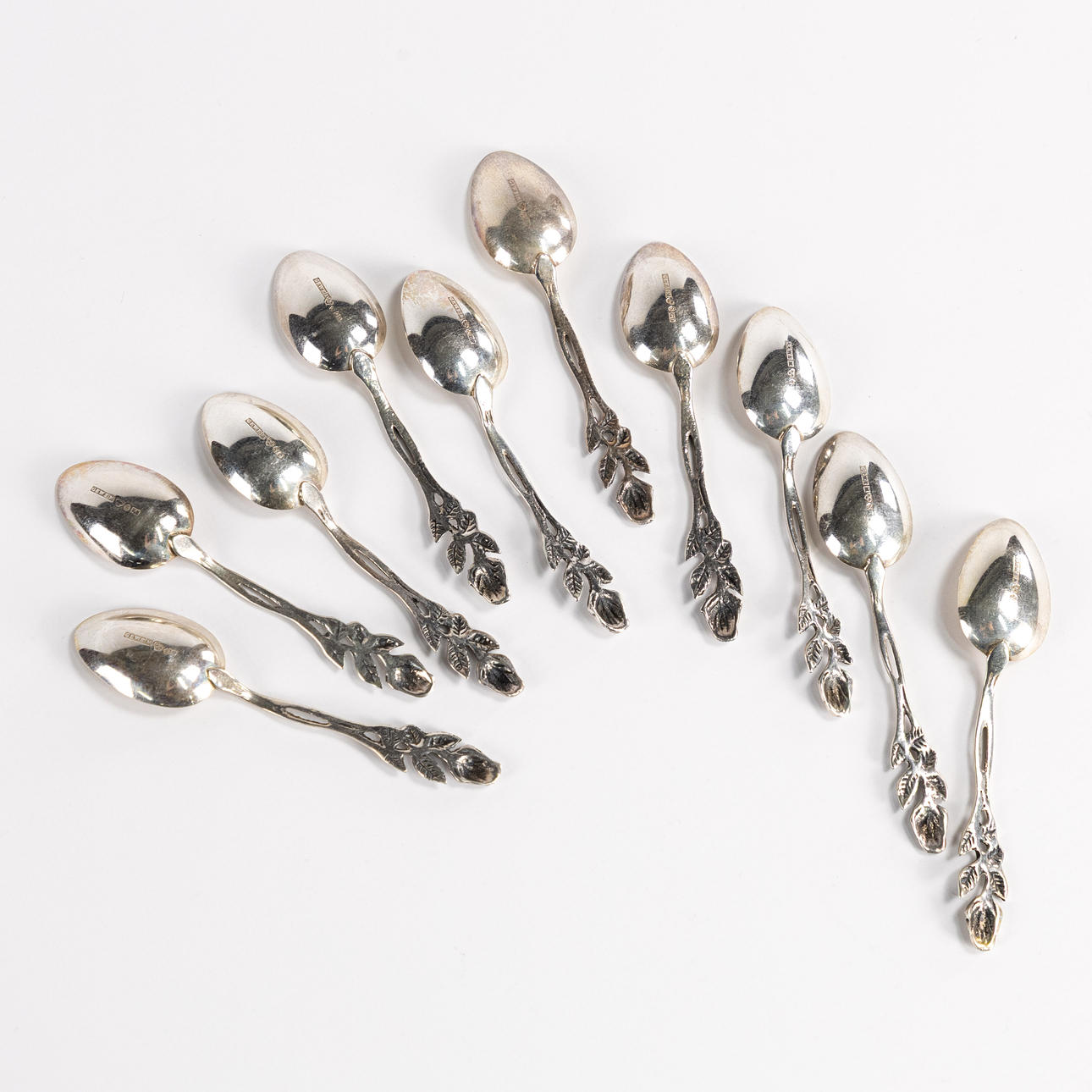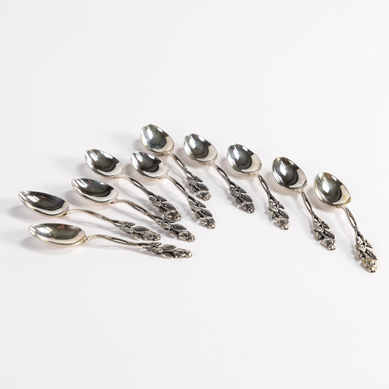 5029321. SPOONS. 13 pcs, silver, mostly demitasse spoons.