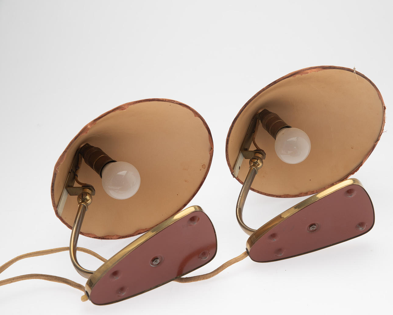 Patina. Lampshades and wiring need to be replaced. No functional guarantee is provided.