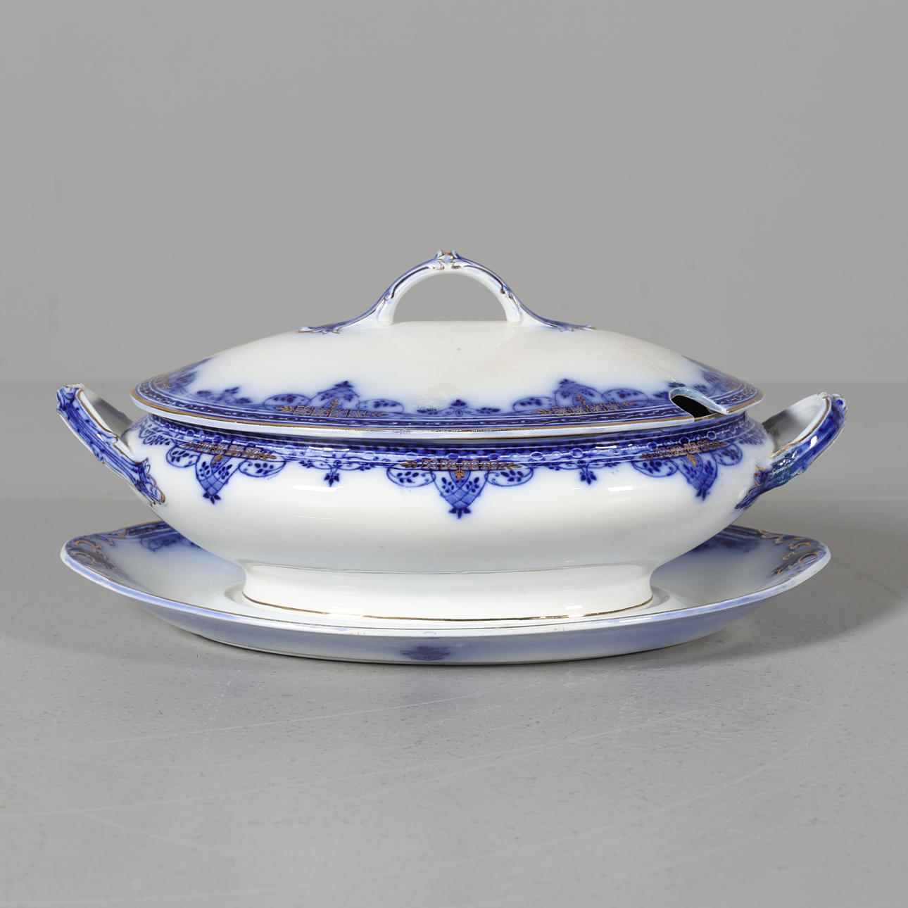 2 tureens with lids on platters, height 18 cm.