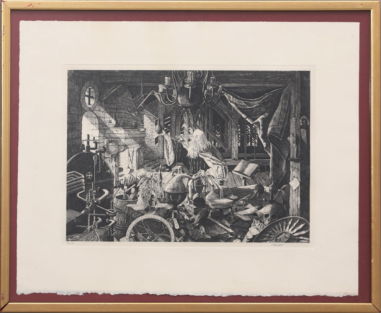 CHRISTIAN BAUDET. Scientist. Etching, signed and numbered 50/100, dated 78.