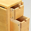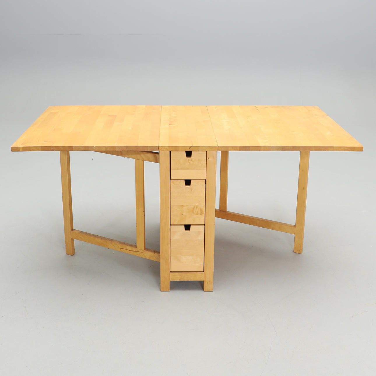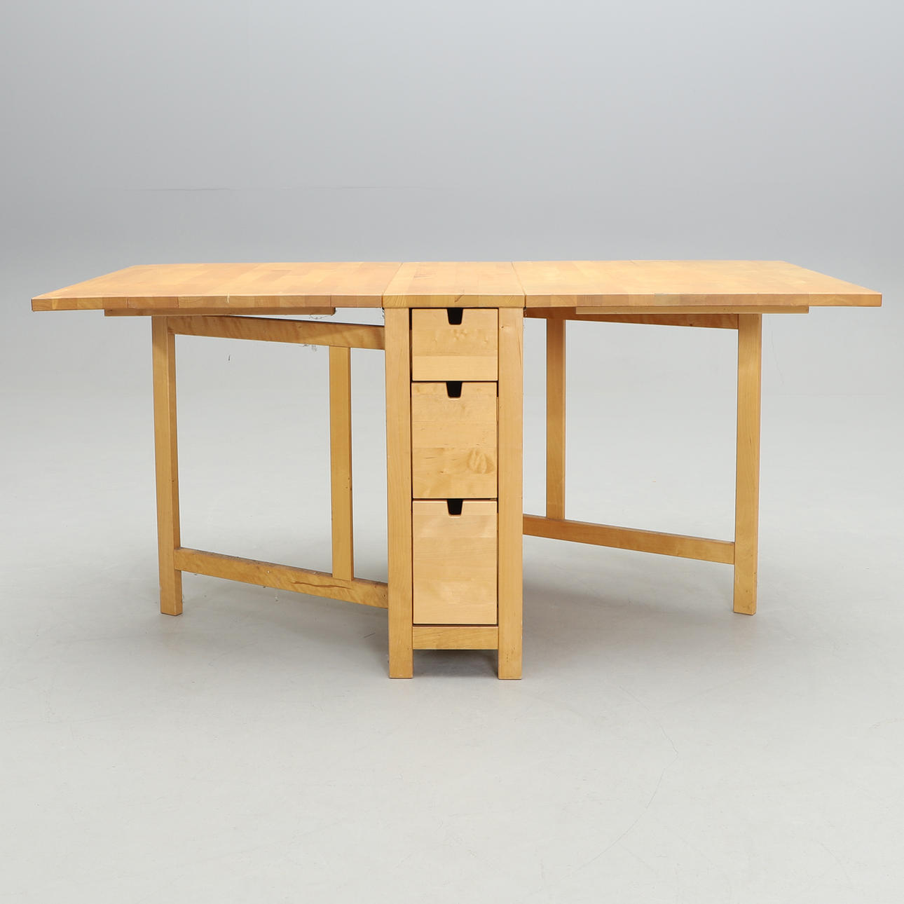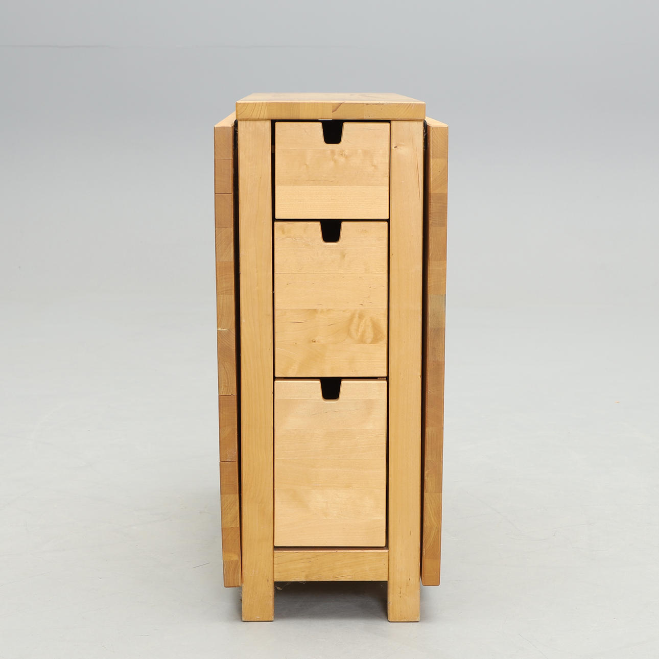 With drawers. Height 74, width 80, length 26+64+64 cm, total extended 154 cm.