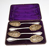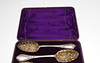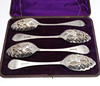 A set of four large silver plated berry spoons by Walker & Hall, (23cms long), in a fitted case. Case 26cms by 19.5cms.