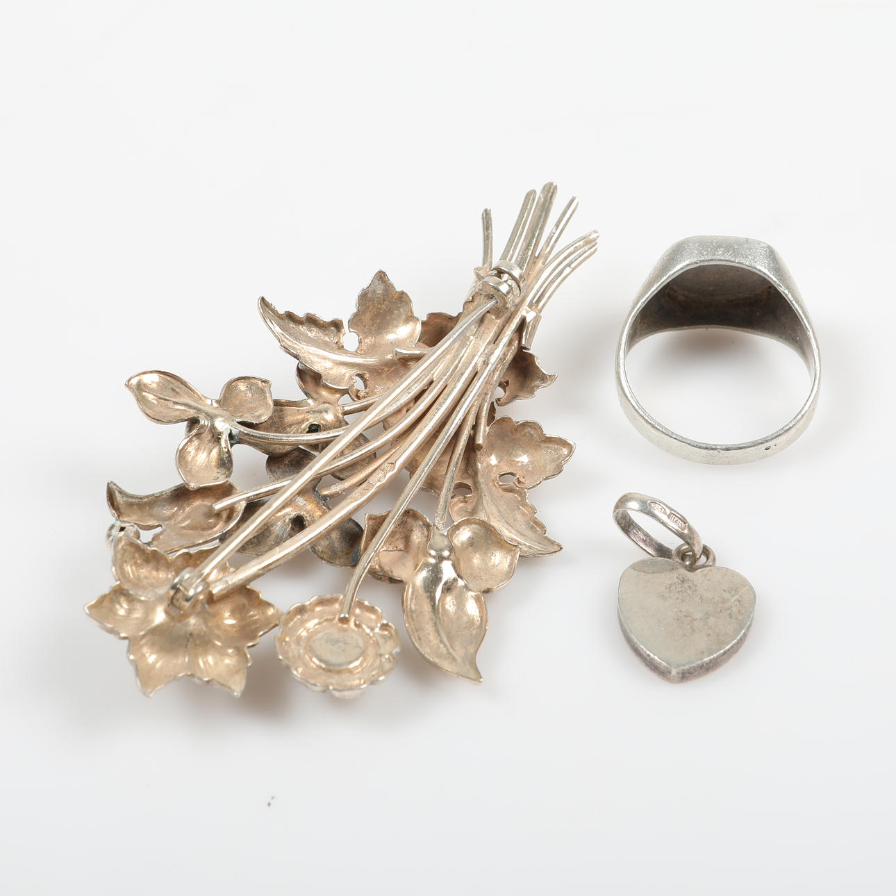 1 brooch, Gustav Dahlgren & Co, Malmö, length 73 mm 1 pendant, height 23 mm 1 signet ring with engraving, inner diameter 18.10 mm.