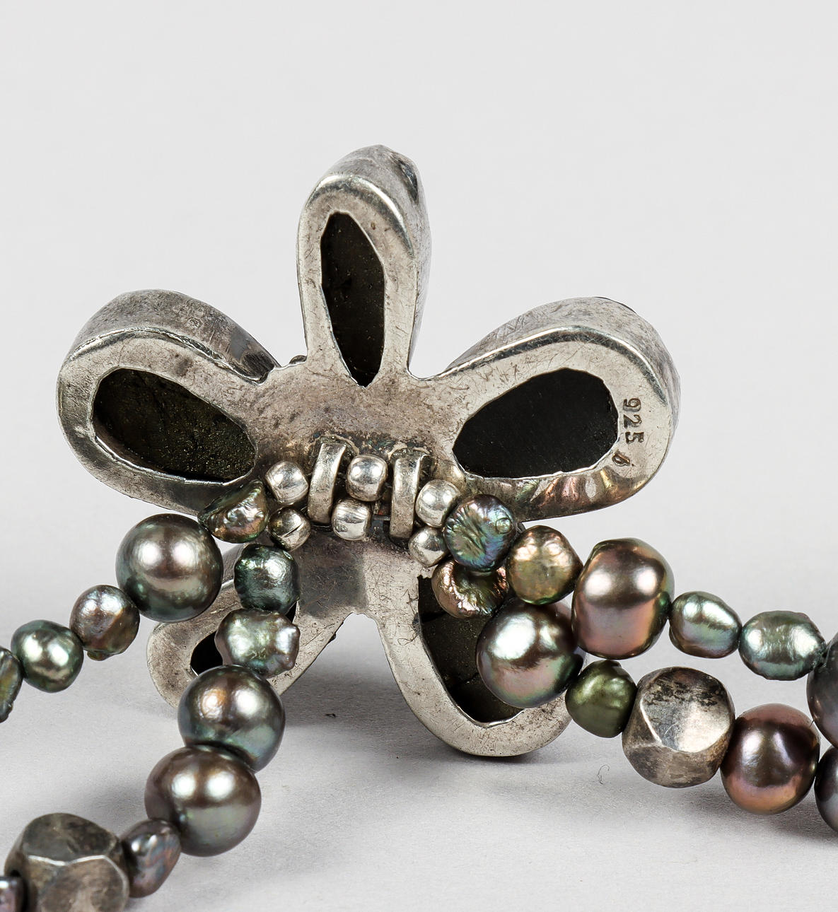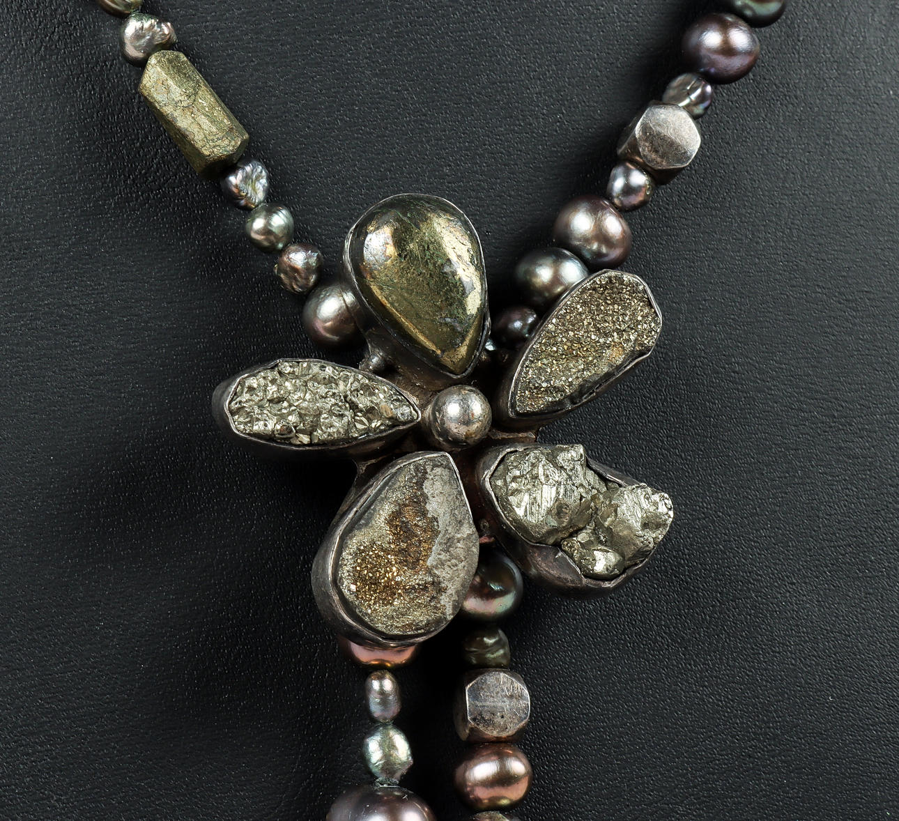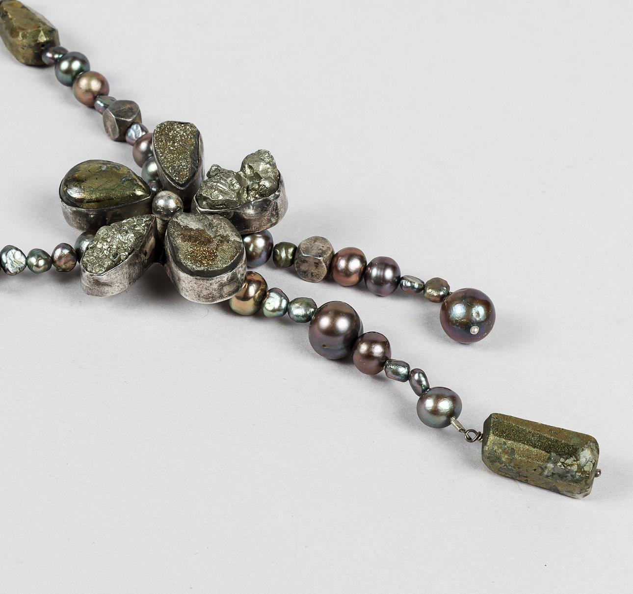 NECKLACE, silver, pyrite and coloured beads.