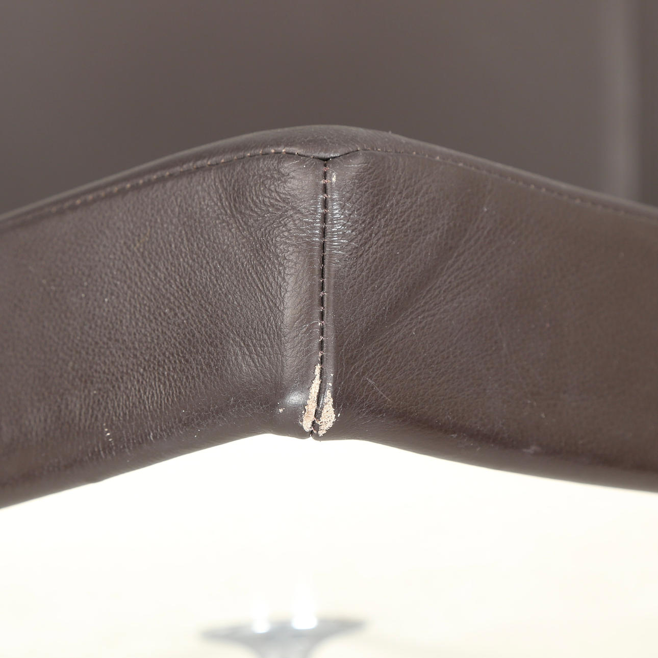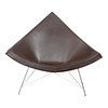Vitra. "Coconut" armchair with a shell of molded synthetic material, upholstered in brown leather, frame of chrome-plated steel. Designed in 1955. Manufactured by Vitra with label from the maker. H. 79, W. 102, D. 90 cm.