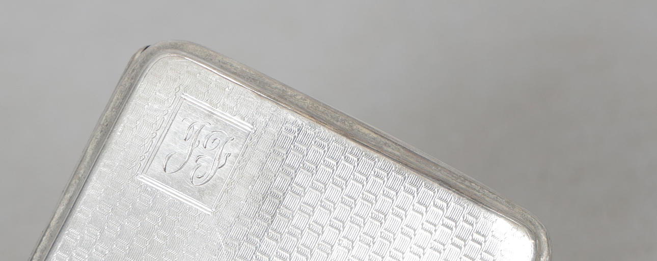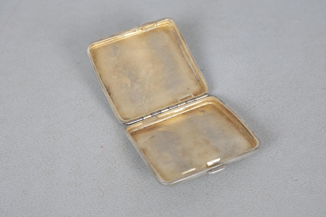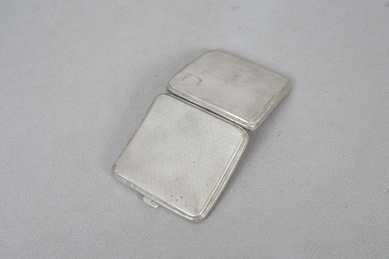 Hallmarked Birmingham 1928, having an engine turned case and bearing initials, 8cm wide, weight 3.04oz.
