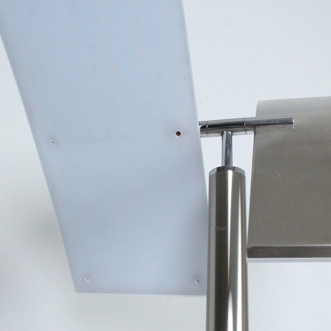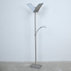 B-LEUCHTEN, floor uplighter with LED, manufactured in chrome and nickel with acrylic shades in white.
