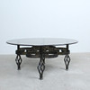 Brutalist wrought iron coffee table, 1970s. With a loose glass top.