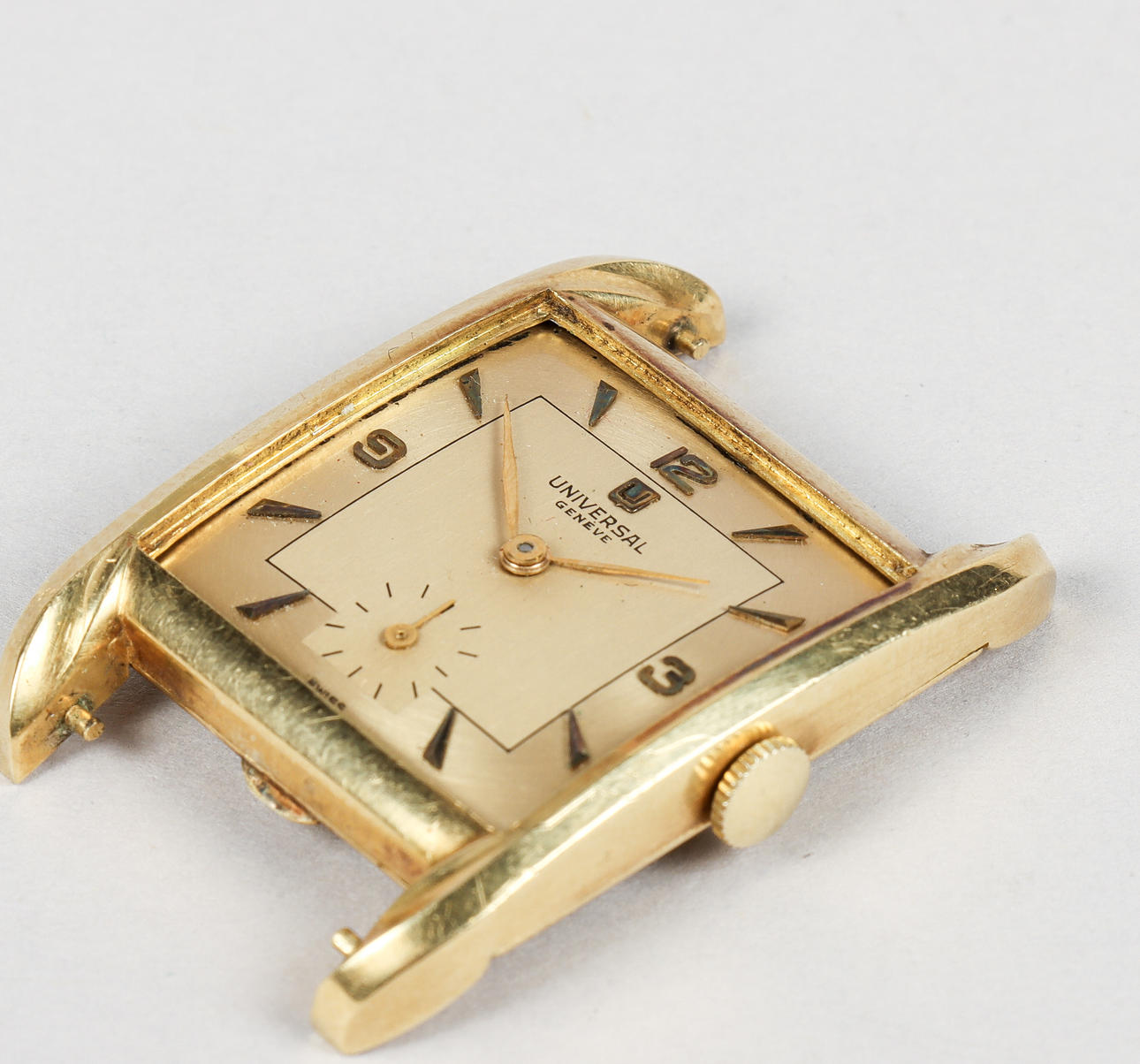 5030766. UNIVERSAL GENÈVE, 18k gold case, 1950s.