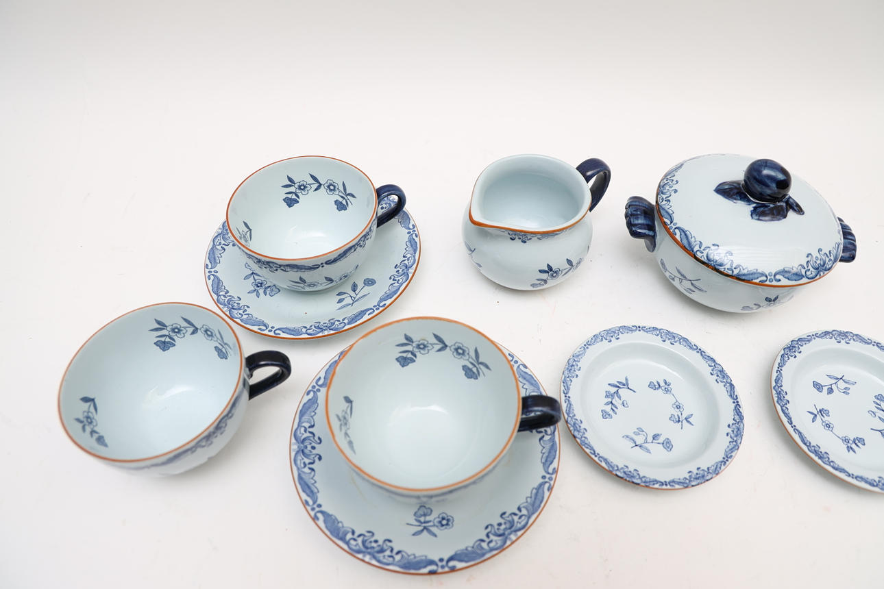 Coffee cups, sugar bowl, creamer, and saucers. Cup diameter 8.5 cm.