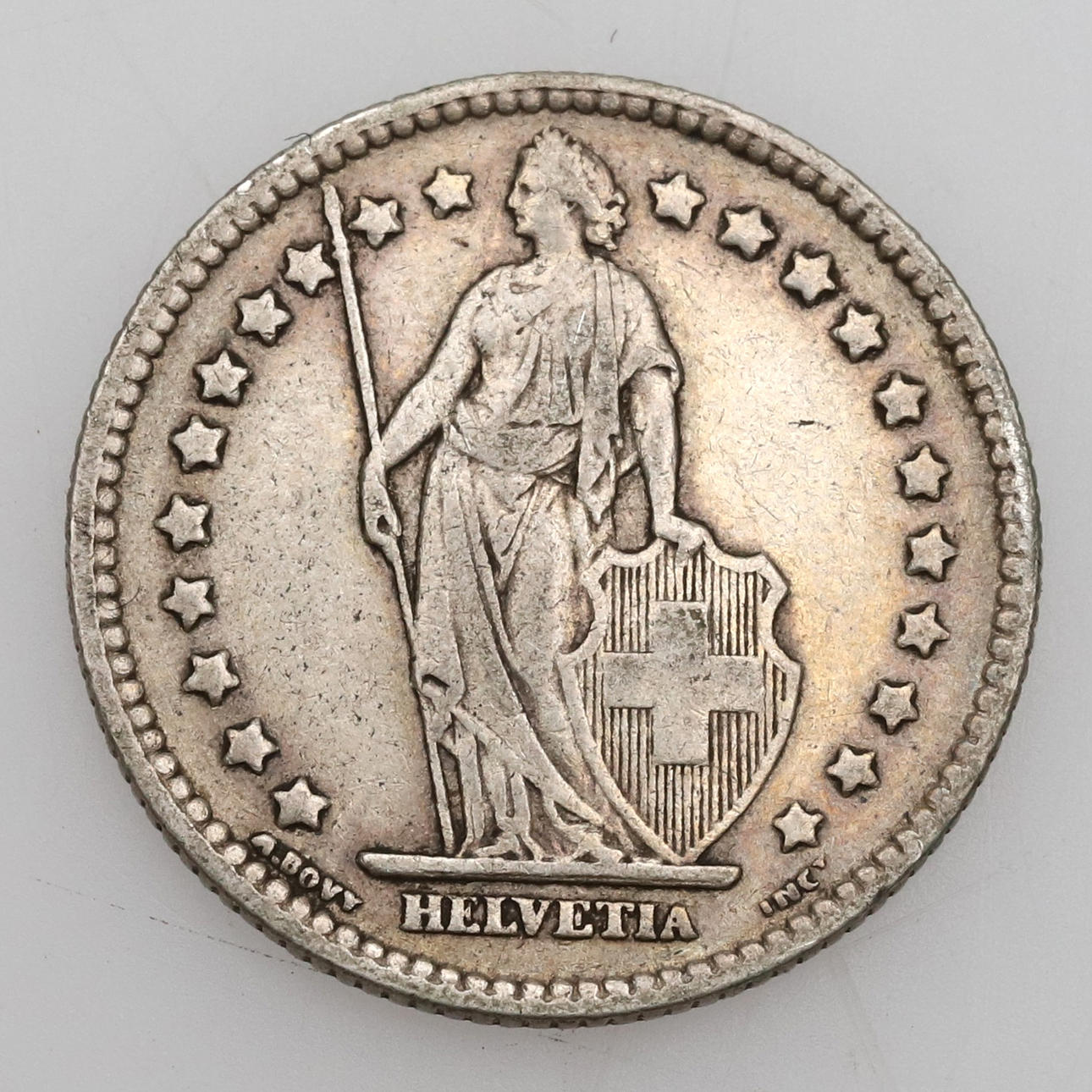 Silver coins from Switzerland, France, Germany & USA & Belgium.