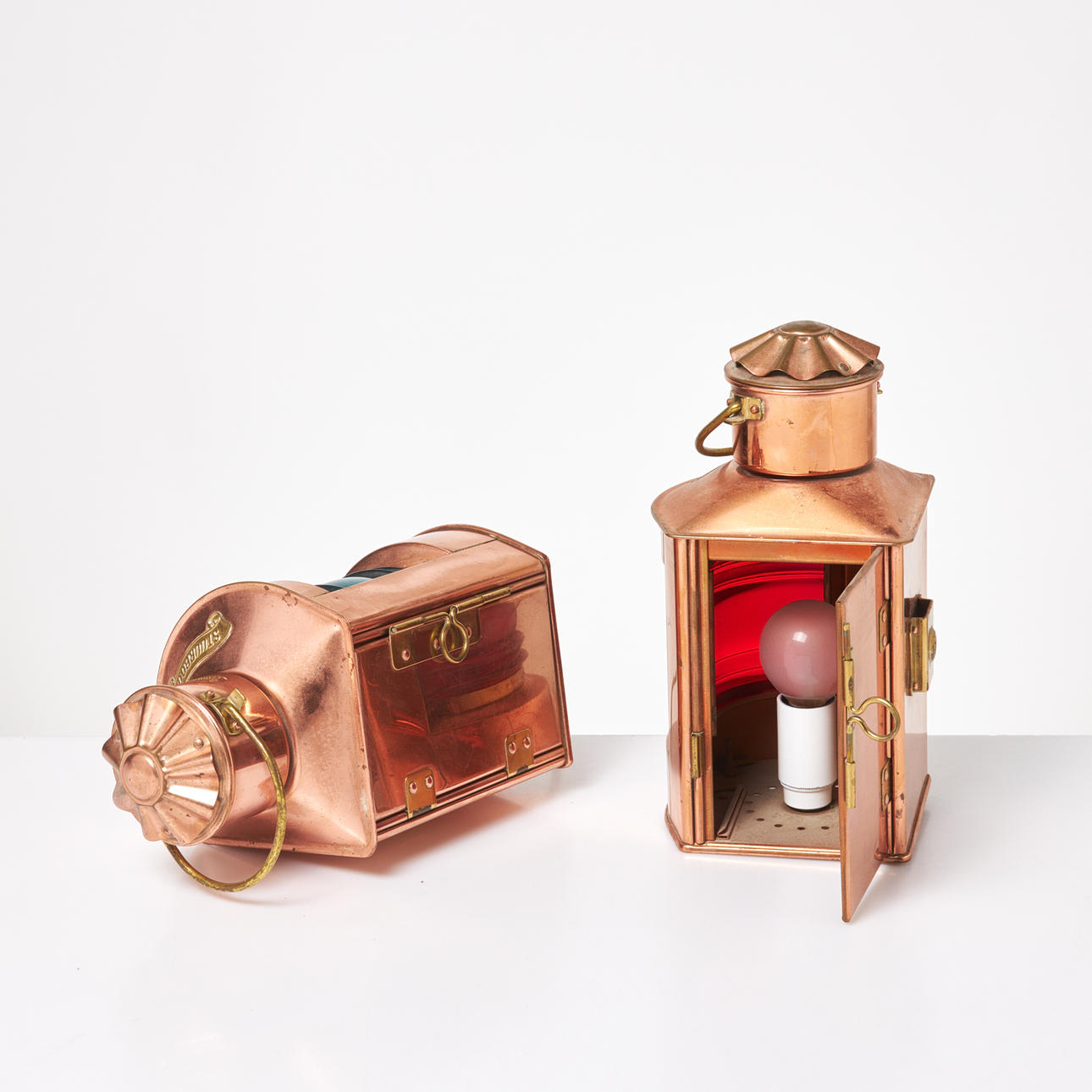 5031320. LANTERNS. 1 pair, copper, red and green glass.